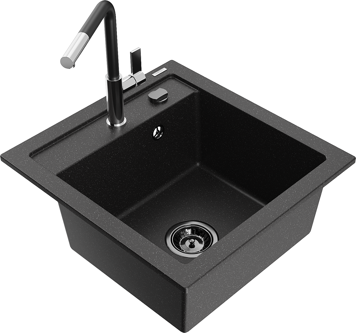 Mexen Vito granitē izlietne ar 1-nodalījumu un virtuves jaucējkrānu Flora, melna/sudraba metālika - 6503-73-670401-07-B