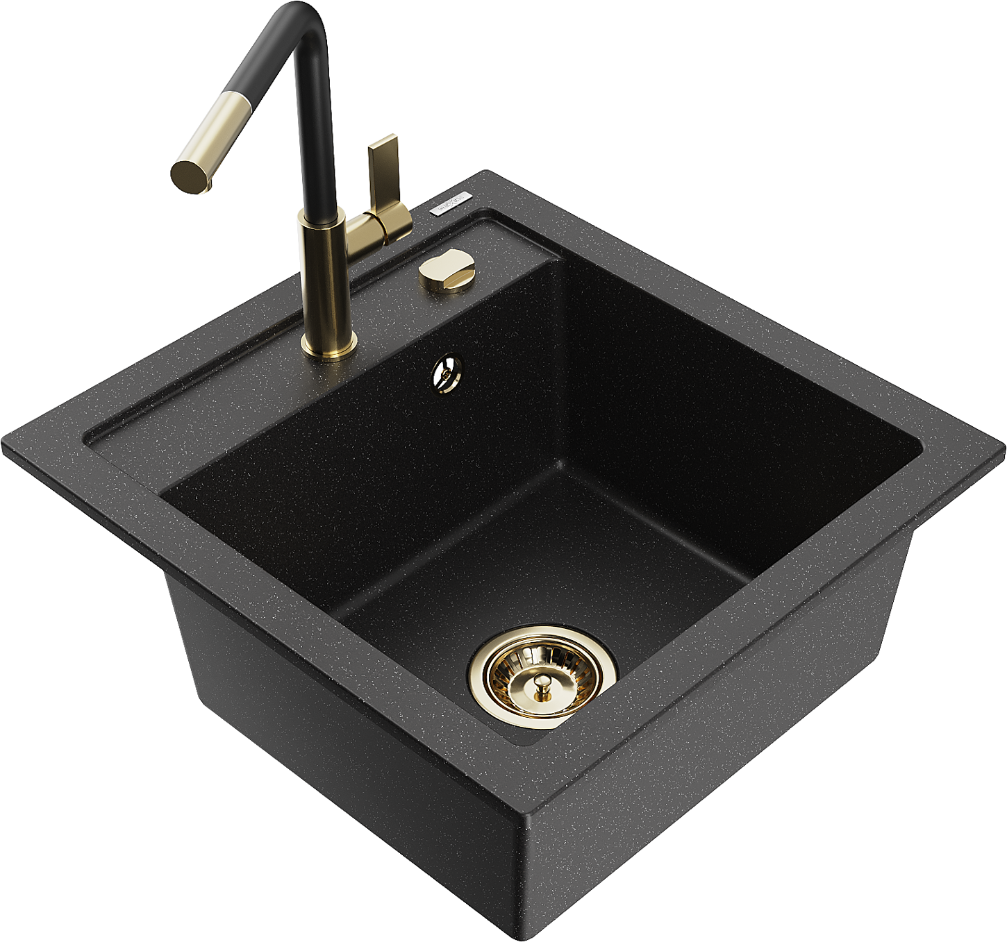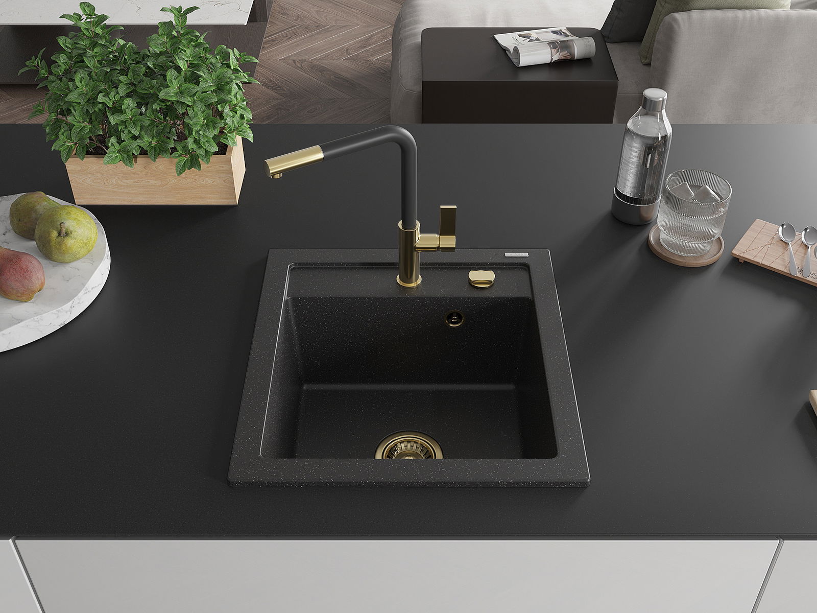 Mexen Vito granīta izlietne ar vienu kameru un virtuves jaucējkrānu Flora, melns/sudraba metāliks - 6503-73-670401-57-G