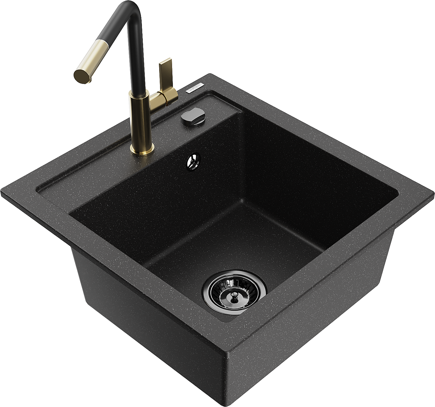 Mexen Vito granitīgs virtuves izlietne ar 1 nodalījumu un Flora krānu, melns/sudraba metālika - 6503-73-670401-57-B
