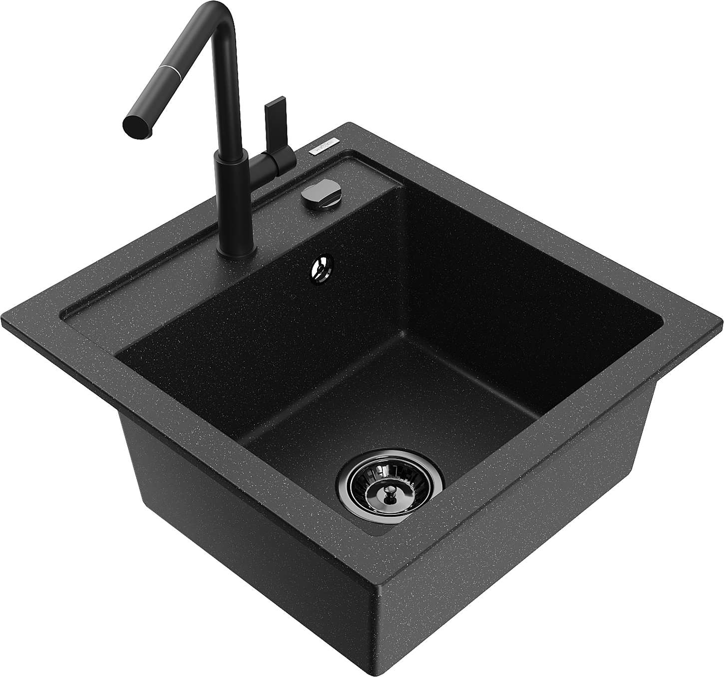 Mexen Vito granīta izlietne ar vienu nodalījumu un virtuves jaucējkrānu Flora, melns/sudraba metālisks