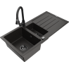 Mexen Andres granitā izlietne ar 1,5 nodalījumiem un notecētavu un virtuves krānu Elia, melna/sudraba - 6515-73-670101-70-B