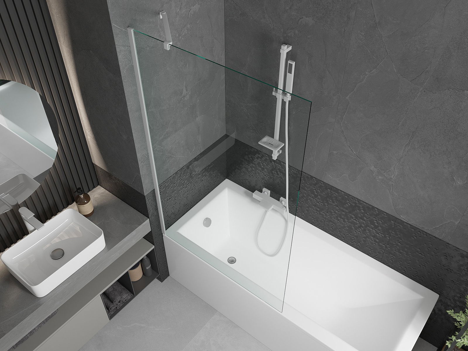 Mexen Next vannas aizkars ar vienu spārnu 90 x 150 cm, caurspīdīgs, balts - 895-090-000-00-00-20