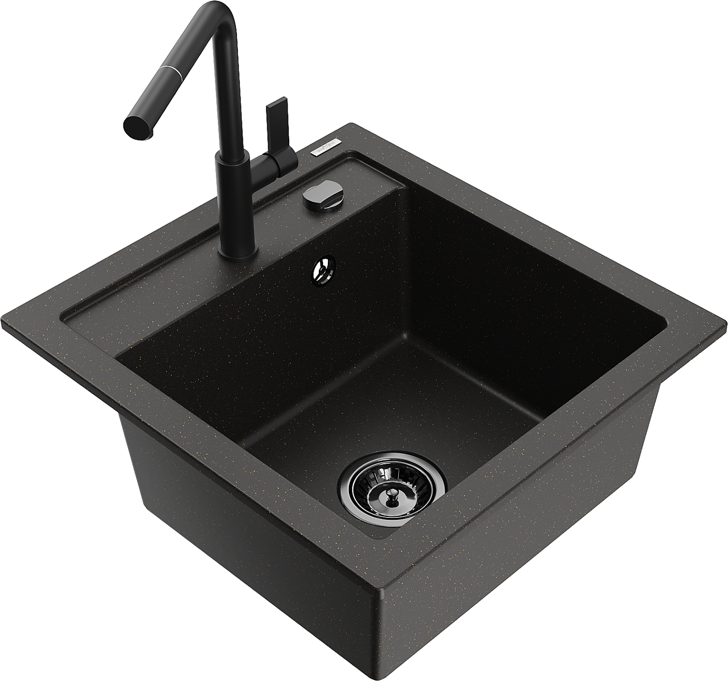 Mexen Vito granitā izlietne ar 1 nodalījumu un Flora virtuves jaucējkrānu, melna/zeltīta metāliska - 6503-75-670401-70-B
