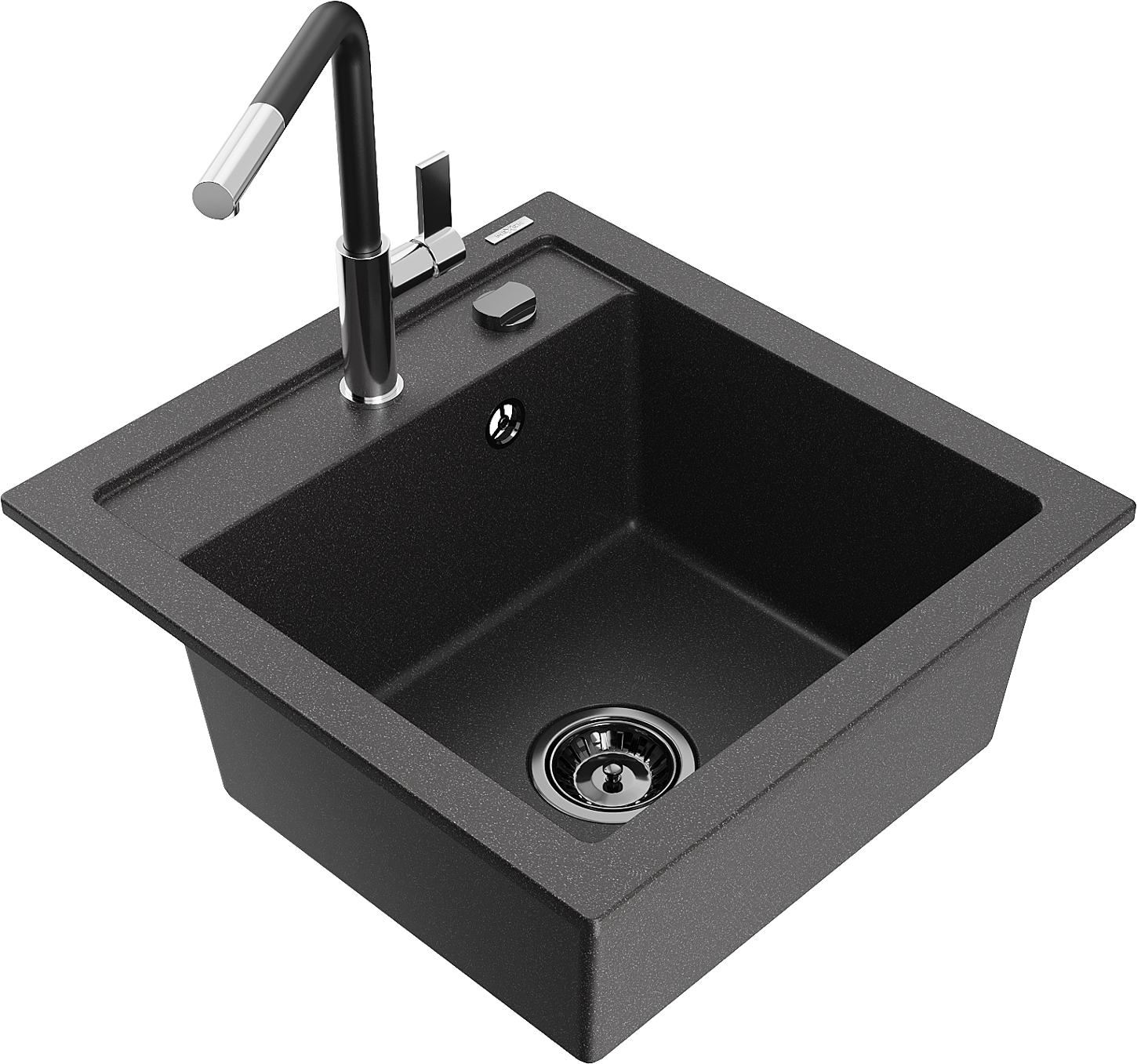Mexen Vito granitā izlietne ar 1 nodalījumu un virtuves jaucējkrānu Flora, melna ar pilieniem - 6503-76-670401-07-B
