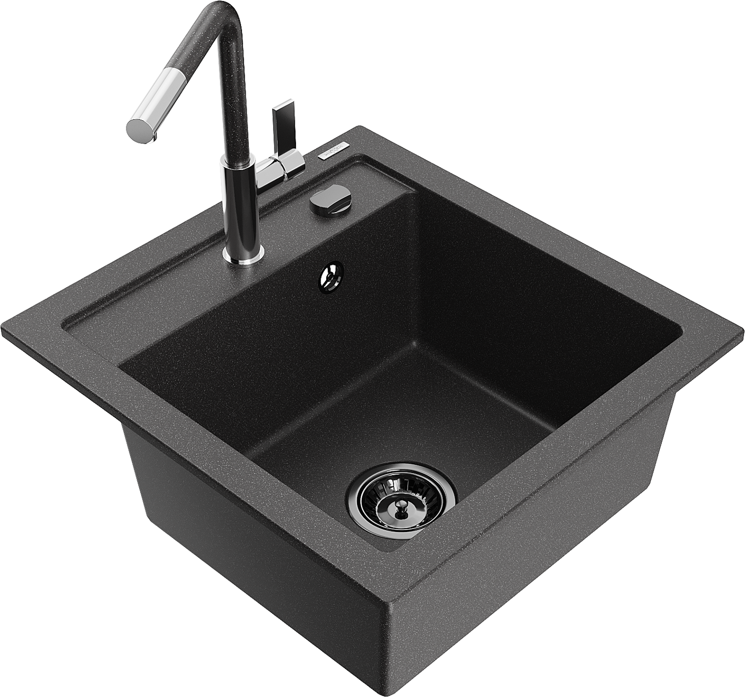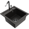 Mexen Vito granitā izlietne ar 1 kameru un virtuves jaucējkrānu Flora, melna ar punktiem - 6503-76-670401-08-B