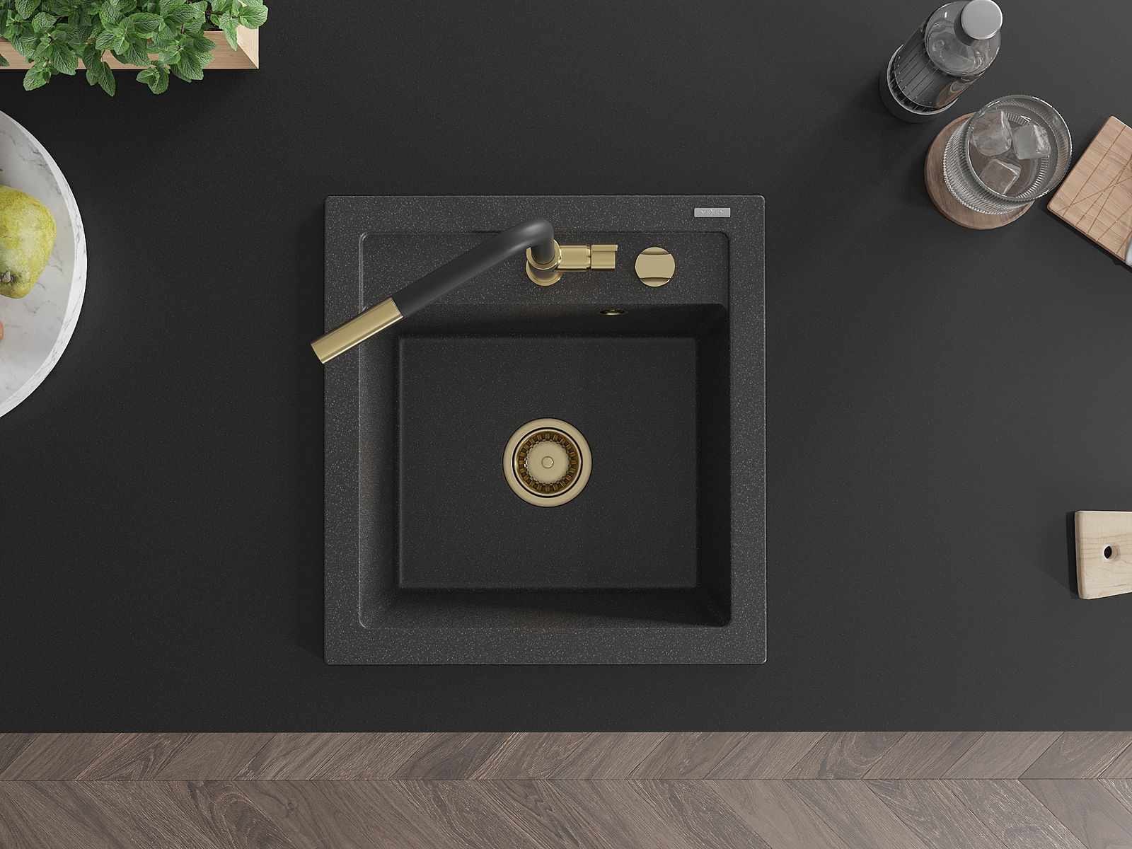 Mexen Vito granitizlietne ar vienu nodalījumu ar virtuves jaucējkrānu Flora, melna ar punktiem - 6503-76-670401-57-G