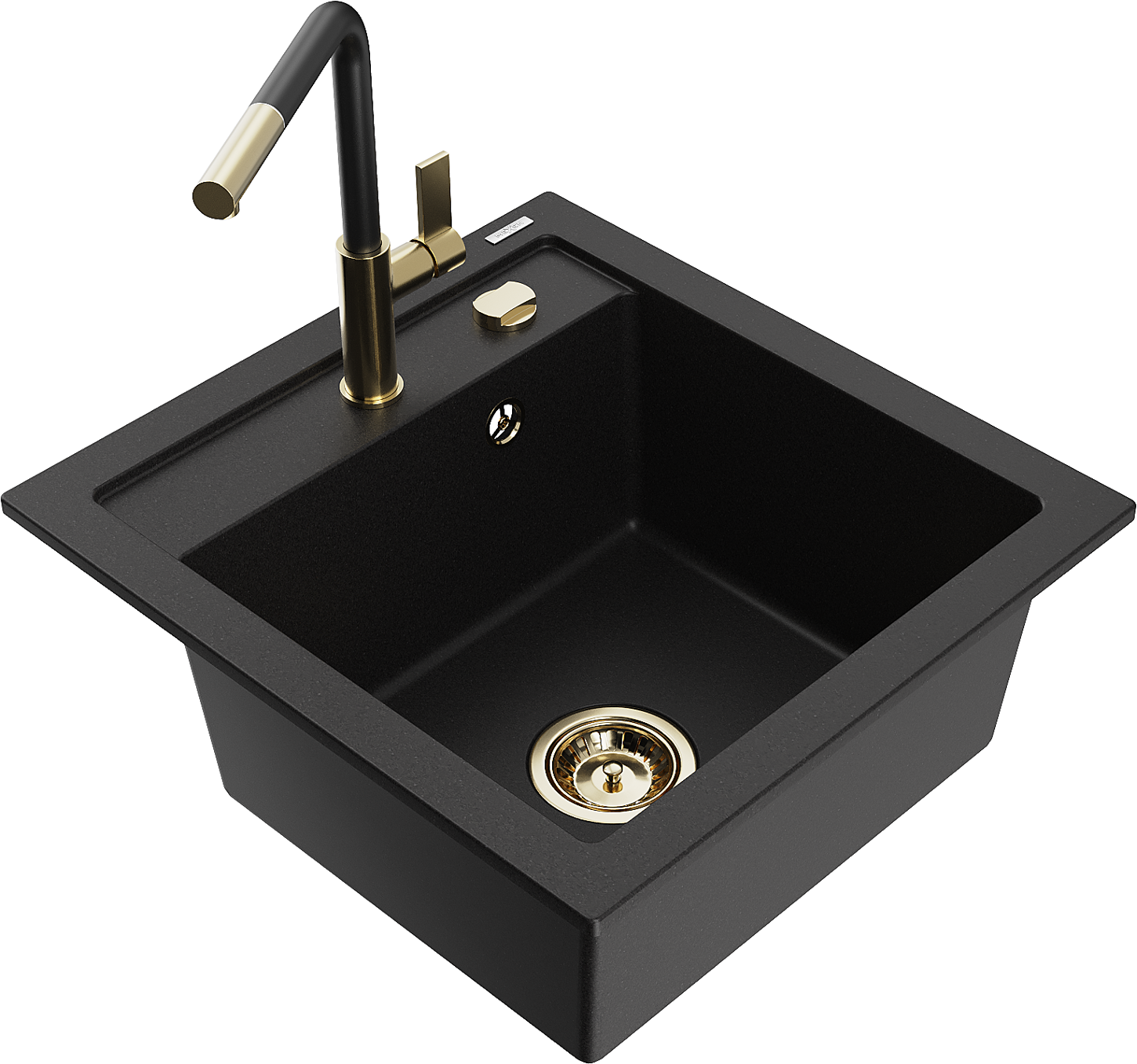 Mexen Vito granīta izlietne ar vienu nodalījumu un virtuves jaucējkrānu Flora, melna - 6503-77-670401-57-G