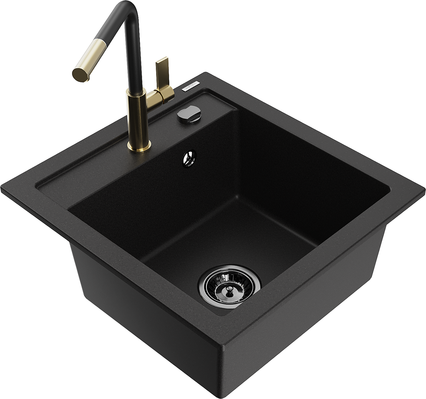 Mexen Vito granīta izlietne ar vienu nodalījumu un virtuve jaucējkrāns Flora, melna - 6503-77-670401-57-B