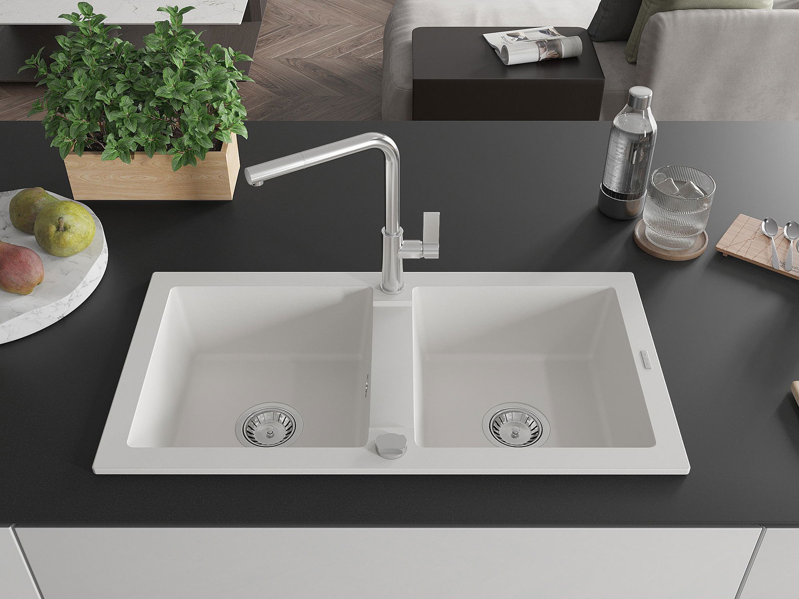 Izlietnes virsma ir izturīga pret traipiem un krāsas izmaiņām, tāpēc to ir viegli uzturēt tīru un tā saglabā savu krāsu ilgu lietošanas laiku. Estētiski un praktiski papildina jebkuru virtuvi.