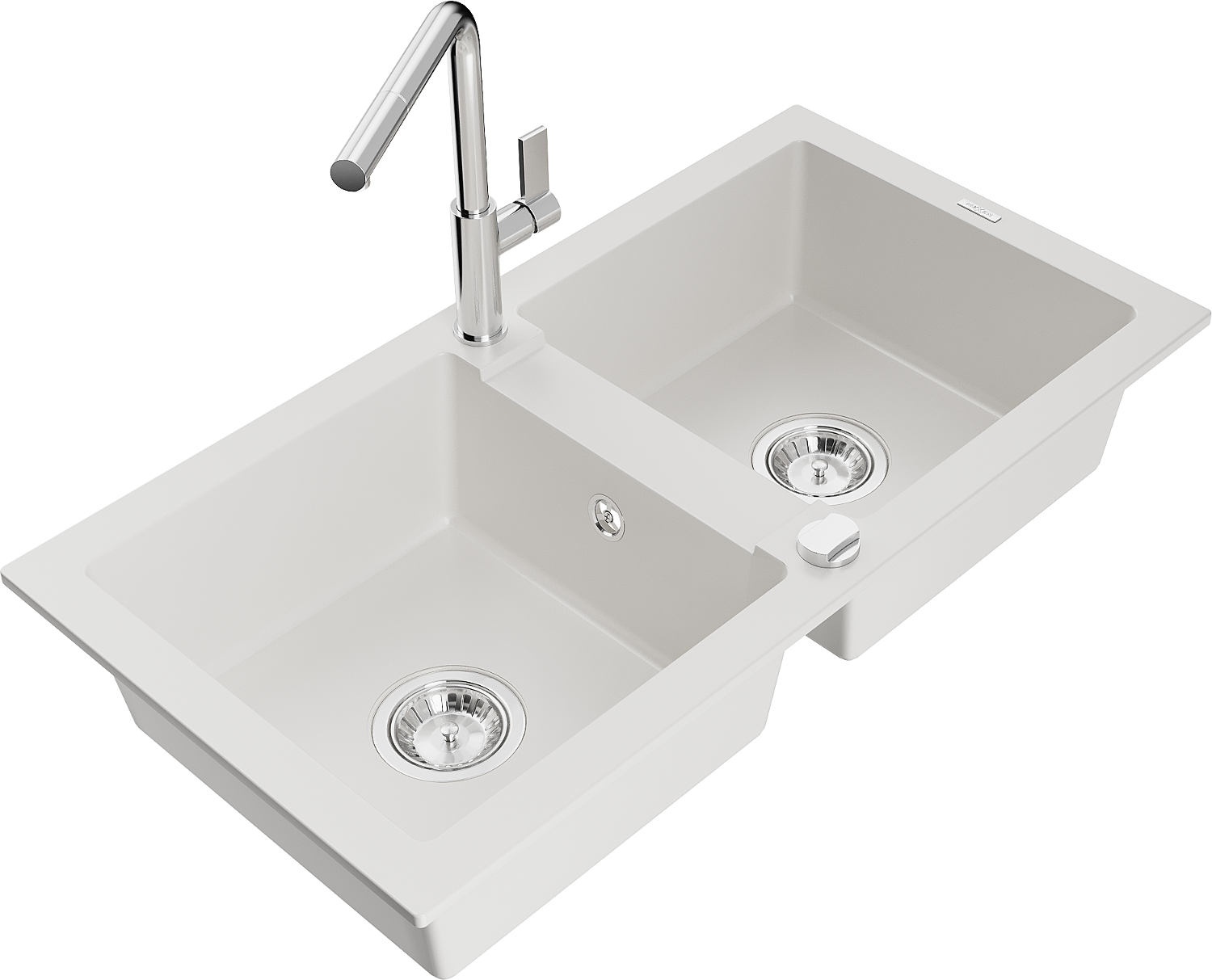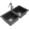 Mexen Mario granta izlietne ar 2 nodalījumiem un virtuves krānu Flora, balta - 6504-20-670401-00