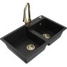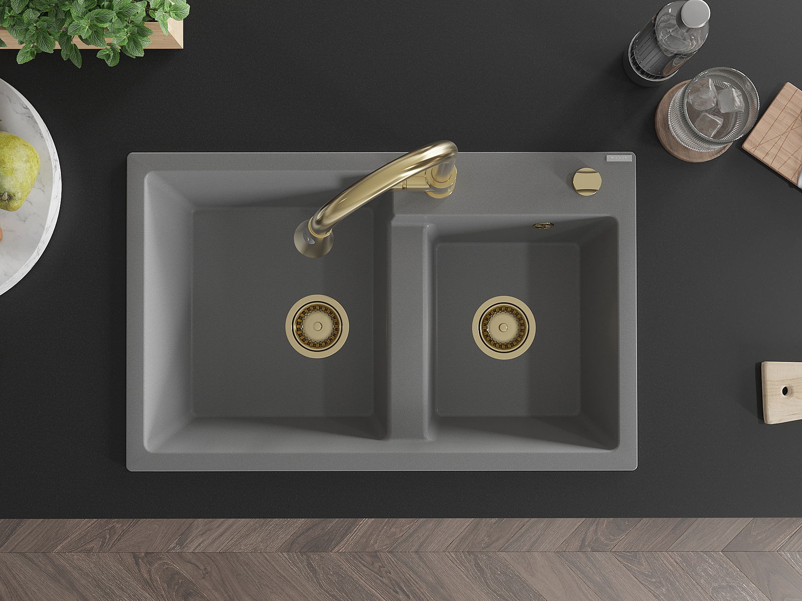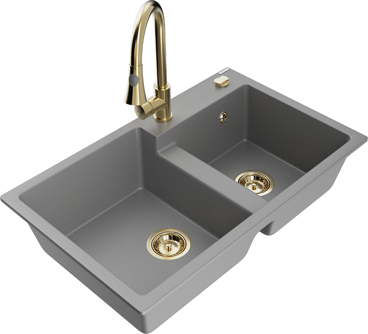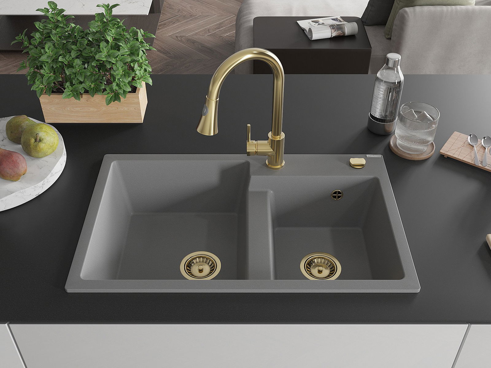 Mexen Tomas granit izlietne ar divām kamerām un virtuves jaucējkrānu Elia, pelēka - 6516-71-670101-50