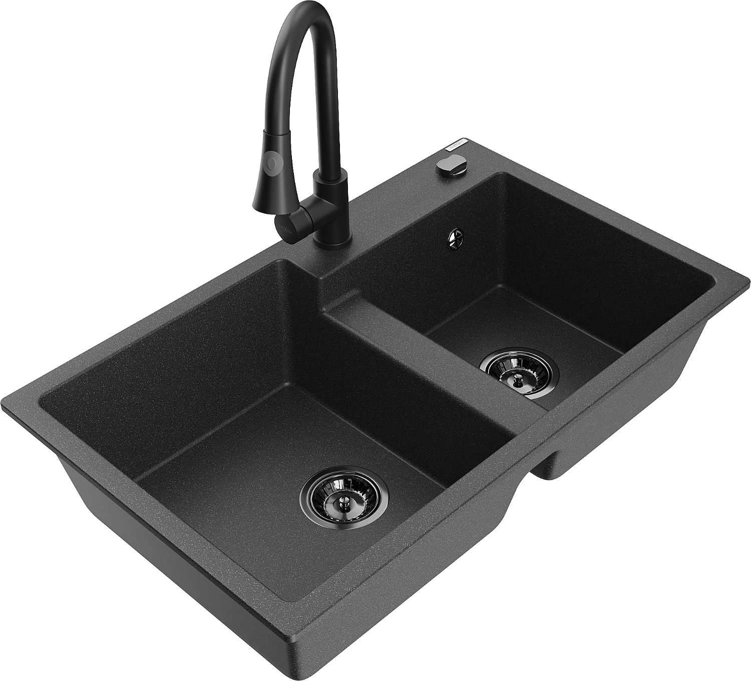 Mexen Tomas Granitais divdaļīgs izlietne ar virtuves jaucējkrānu Elia, melna ar baltiem punktiņiem - 6516-76-670101-70-B