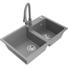Mexen Tomas divpadsmit granīta izlietne ar 2 nodalījumiem un virtuves jaucējkrānu Elia, melns ar punktiem - 6516-76-670101-76