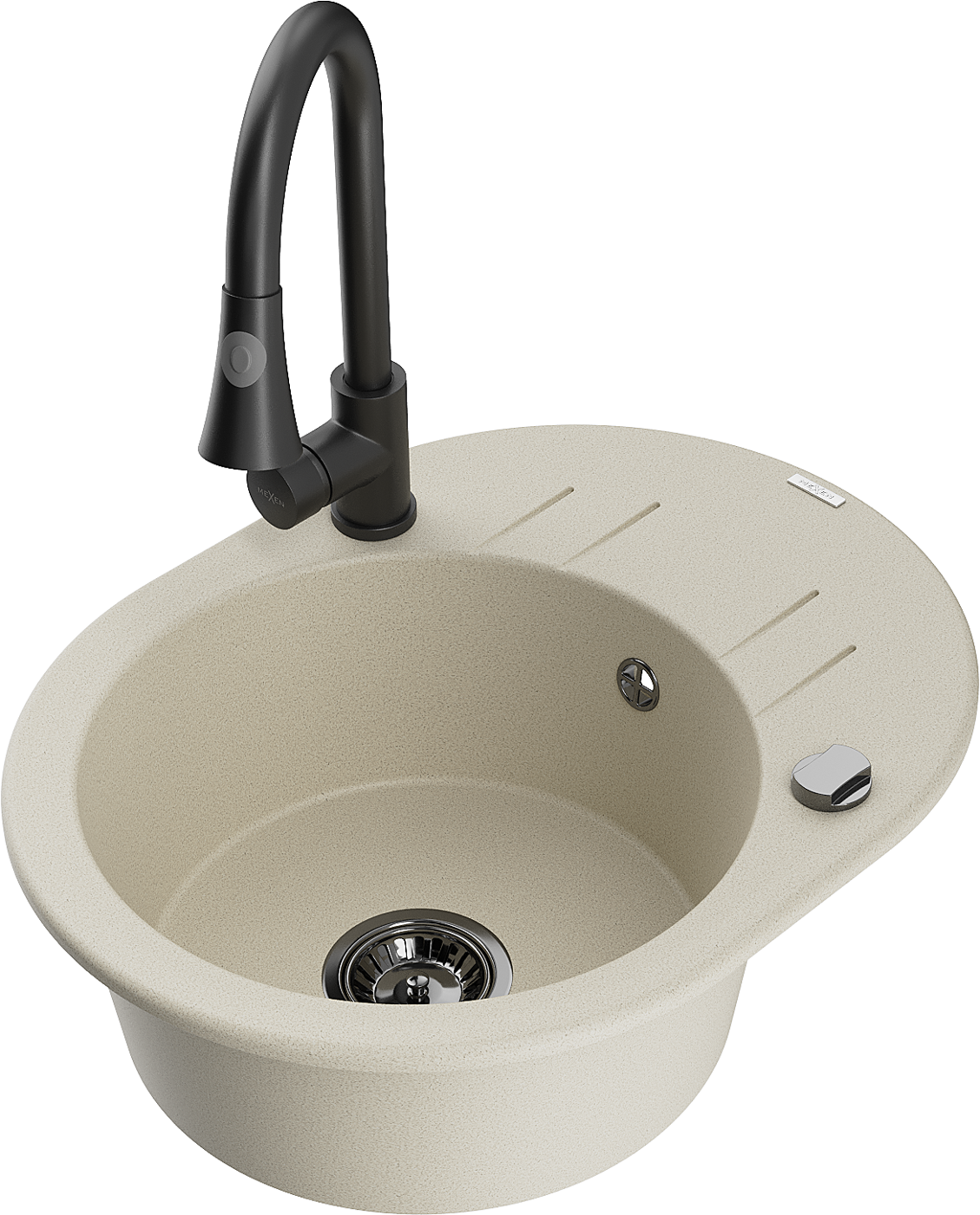 Mexen Kevin granīta izlietne ar vienu nodalījumu ar noteku un virtuves jaucējkrānu Elia, bēša - 6517-69-670101-70