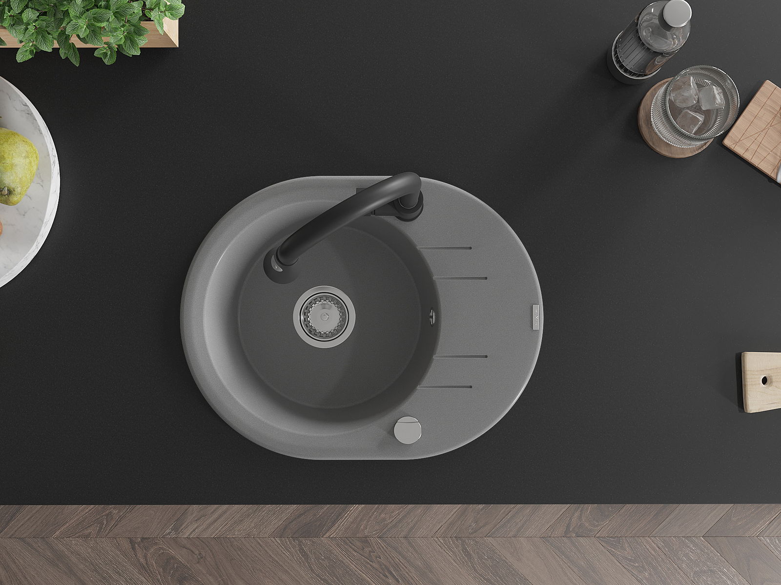 Mexen Kevin granit izlietne ar vienu nodalījumu ar notekcauruli un virtuves jaucējkrānu Elia, pelēks - 6517-71-670101-70