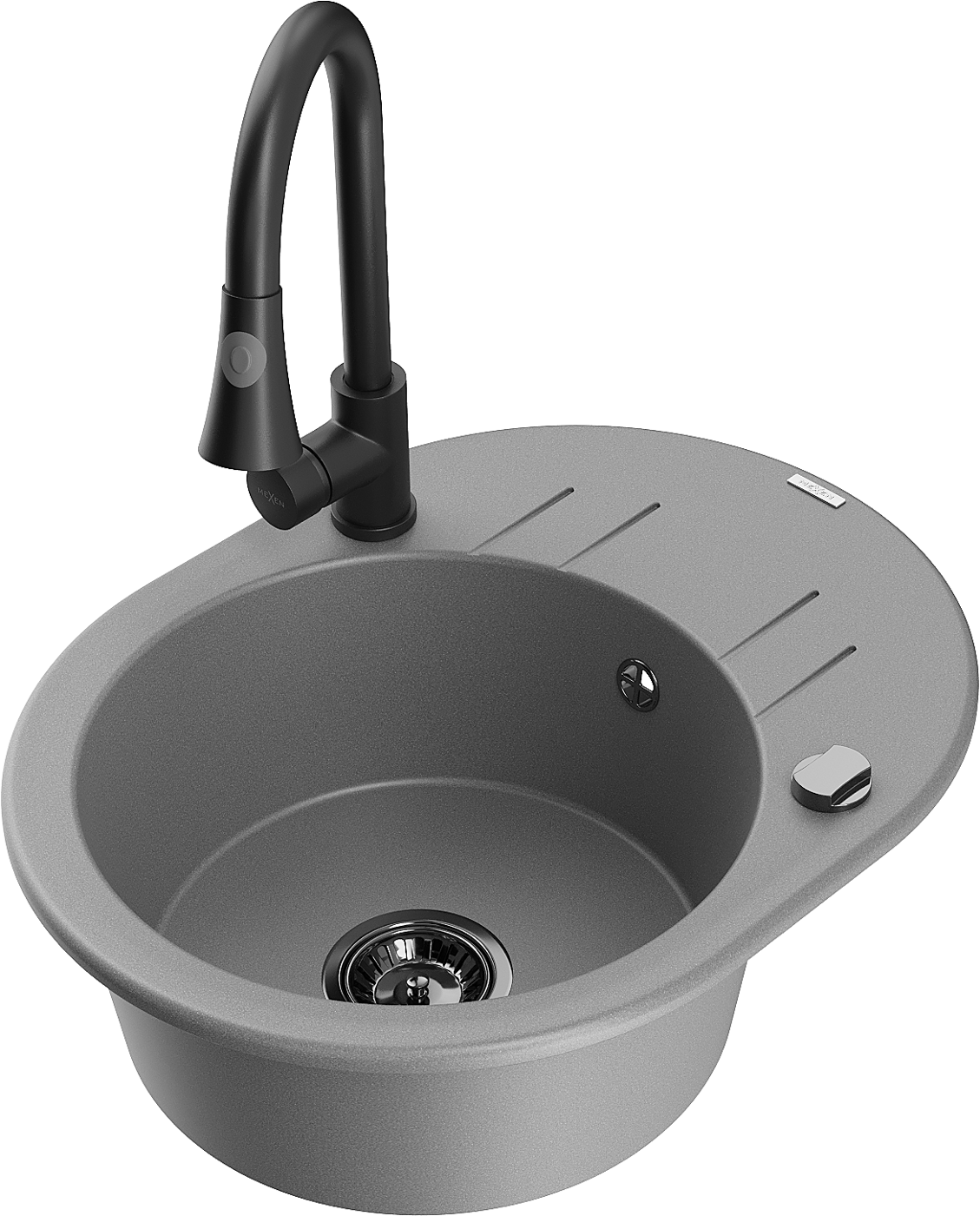 Mexen Kevin granīta izlietne ar vienu nodalījumu ar notekpaplāti un virtuves jaucējkrānu Elia, pelēka - 6517-71-670101-70-B