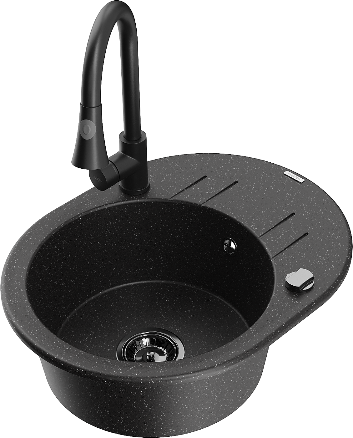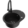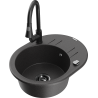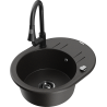 Mexen Kevin granitais izlietne ar vienu nodalījumu, ar nosūcēju un virtuves jaucējkrānu Elia, melna/sudraba metāliks