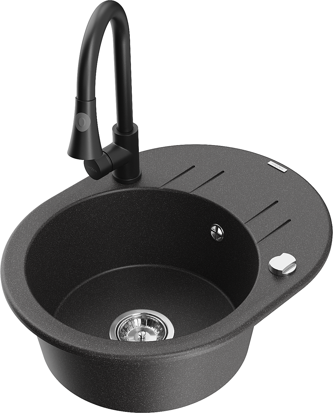 Mexen Kevin granit izlietne ar vienu nodalījumu un ar noteci un virtuves jaucējkrānu Elia, melns raibais - 6517-76-670101-70
