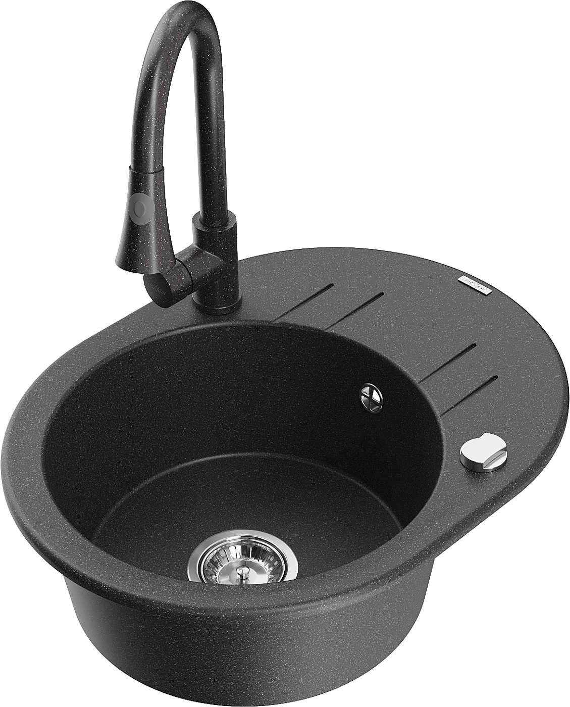 Mexen Kevin granitē izlietne ar 1 nodalījumu, notecētāju un virtuves jaucējkrānu Elia, melna raibi - 6517-76-670101-76