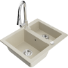 Mexen Carlos granitais izlietne ar 1,5 nodalījumiem un virtuves bateriju Elia, balts - 6518-20-670101-20