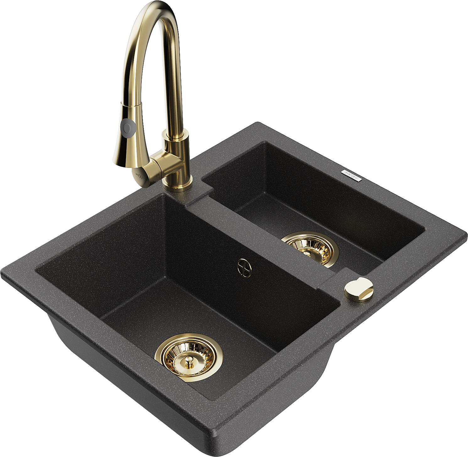 Mexen Carlos granitizlietne ar 1,5 nodalījumu un Elia virtuves jaucējkrānu, melns ar plankumiem - 6518-76-670101-50
