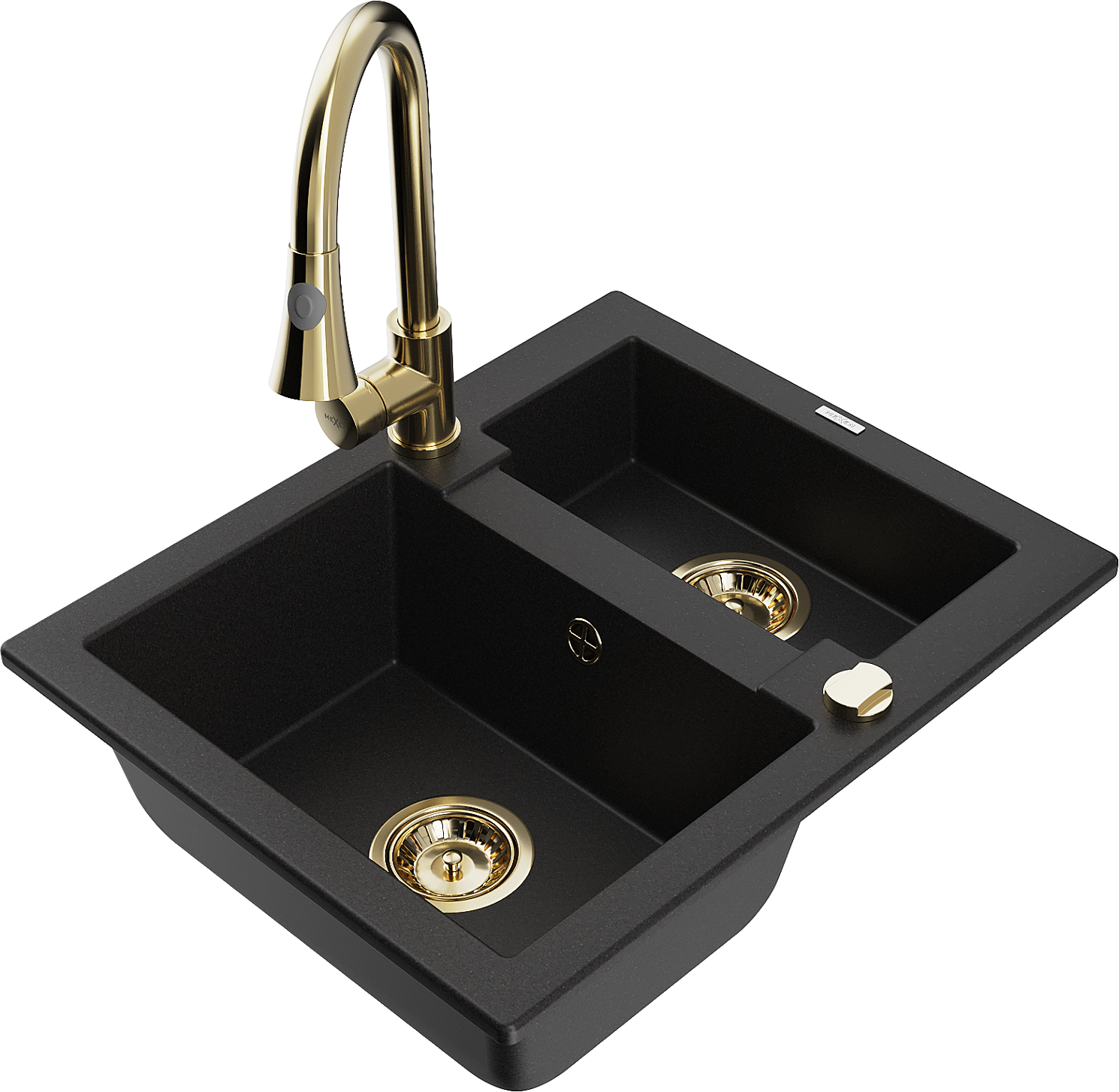 Mexen Carlos granitais izlietnes komplekts ar jaucējkrānu Elia, melns - 6518-77-670101-50