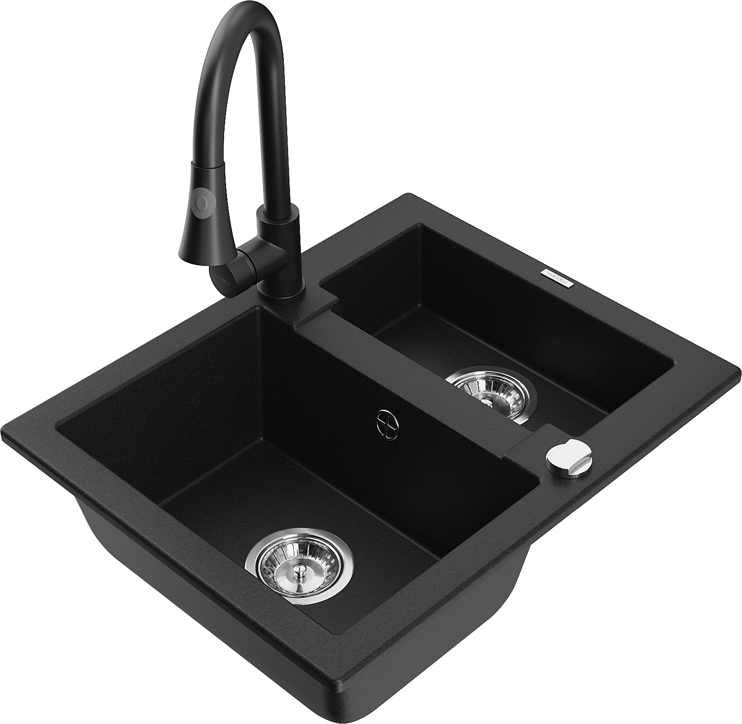 Mexen Carlos granta izlietne ar 1,5 nodalījumu un virtuves jaucējkrānu Elia, melna - 6518-77-670101-70
