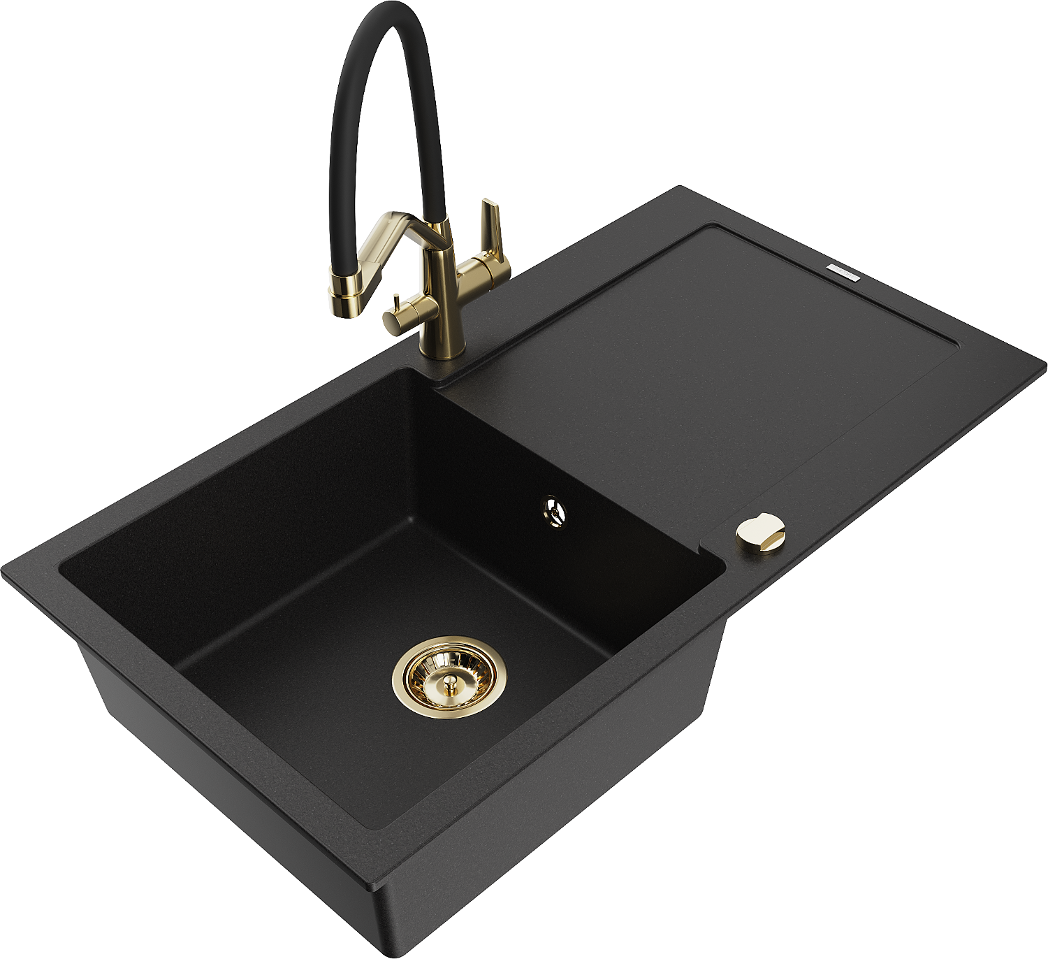 Mexen Leo vienkameras granīta izlietne ar noteci un virtuves maisītāju Duo, melna - 6501-77-671701-57-G