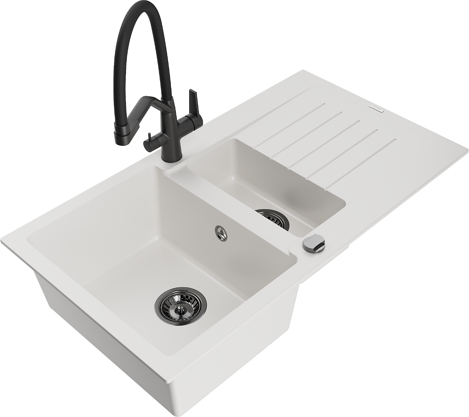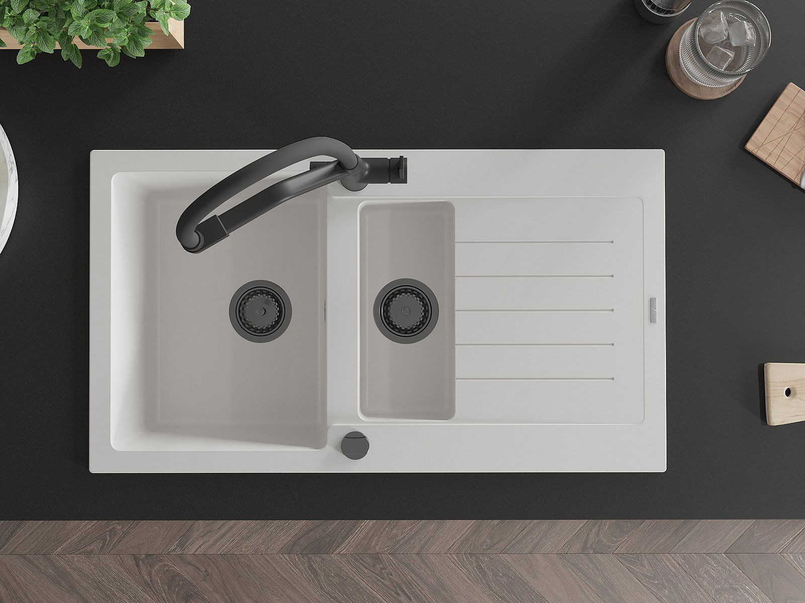 Mexen Matias Grants izlietne ar 1,5 nodalījumiem un noteku, virtuve duets, balta - 6502-20-671701-70-B