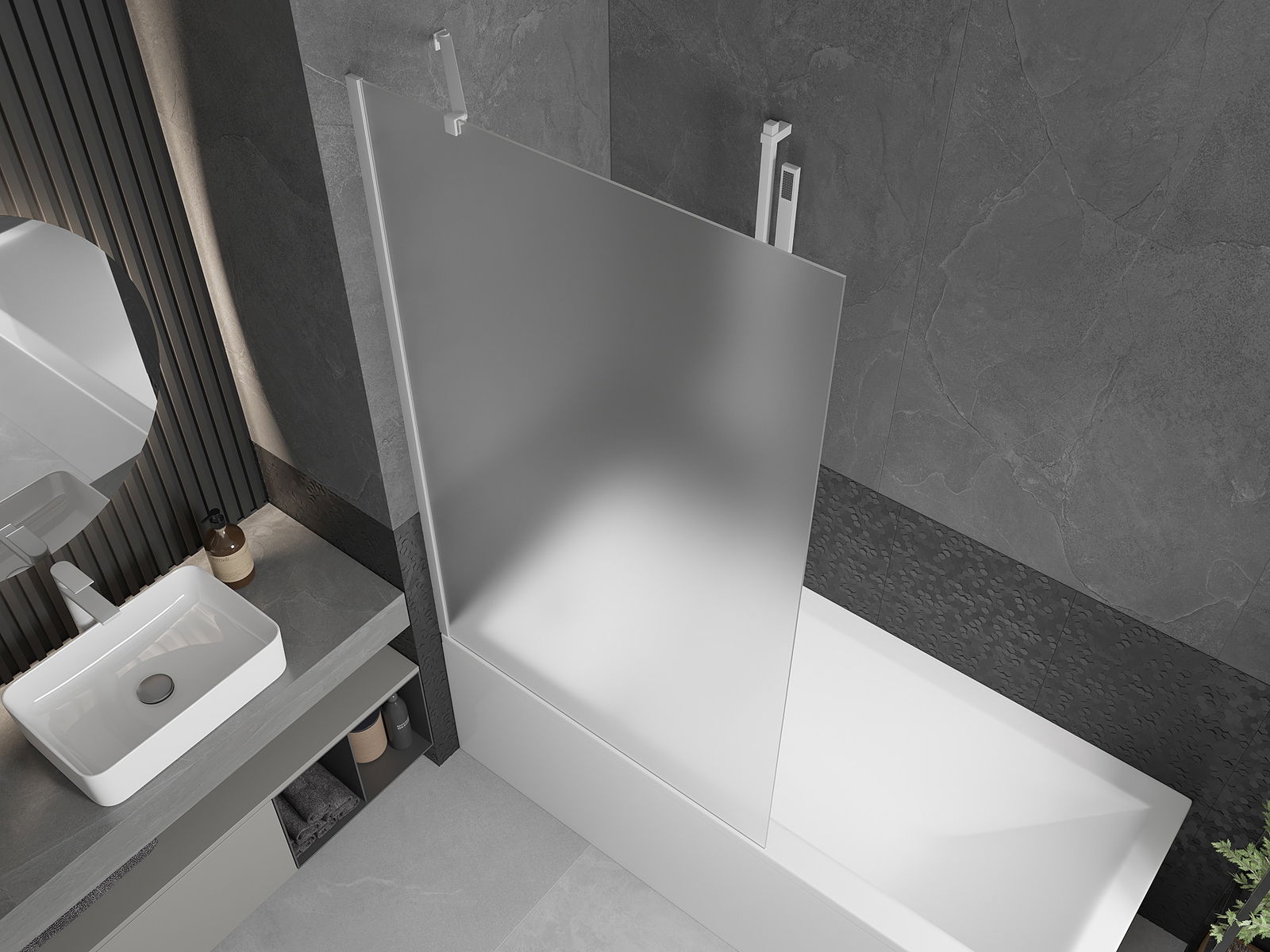 Efektīva aizsardzība pret ūdens izšļakstīšanos peldēšanās laikā. Ekrānam ir blīves, kas ideāli pielāgojas stikla virsmai un vannas malai. Funkcionāls risinājums, kas nodrošina drošību un vieglu tīrību.