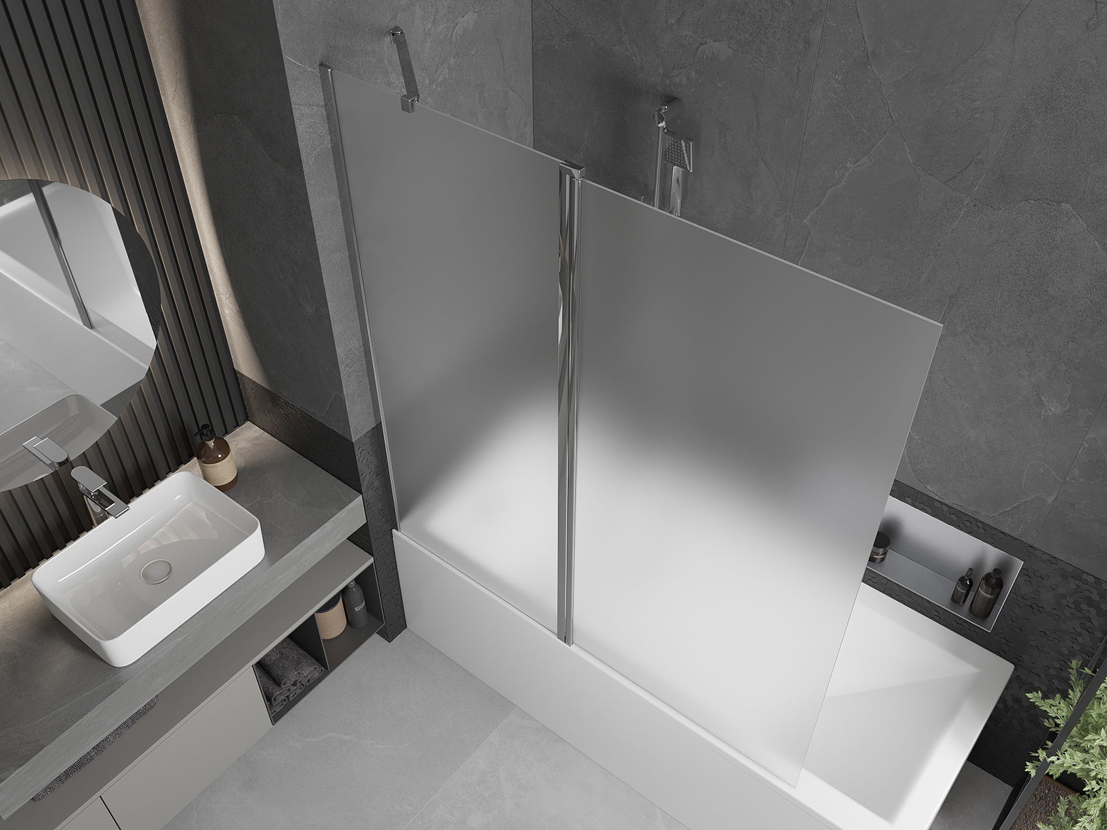 Efektīva aizsardzība pret ūdens izšļakstīšanos peldēšanās laikā. Ekrānam ir blīves, kas ideāli pielāgojas stikla virsmai un vannas malai. Funkcionāls risinājums, kas nodrošina drošību un vieglu tīrību.