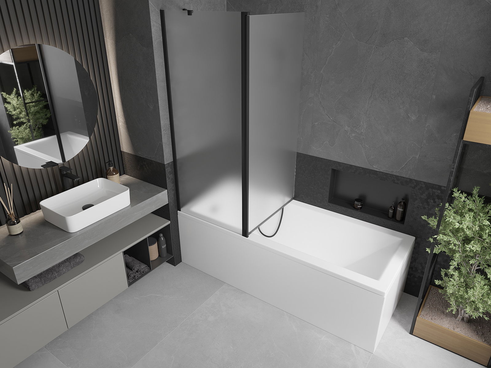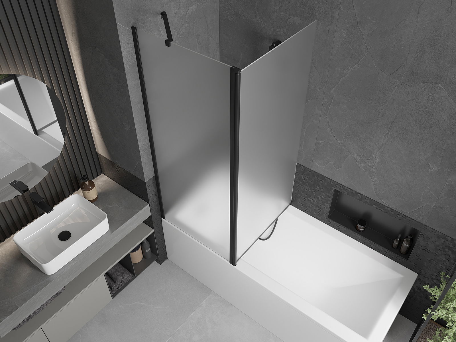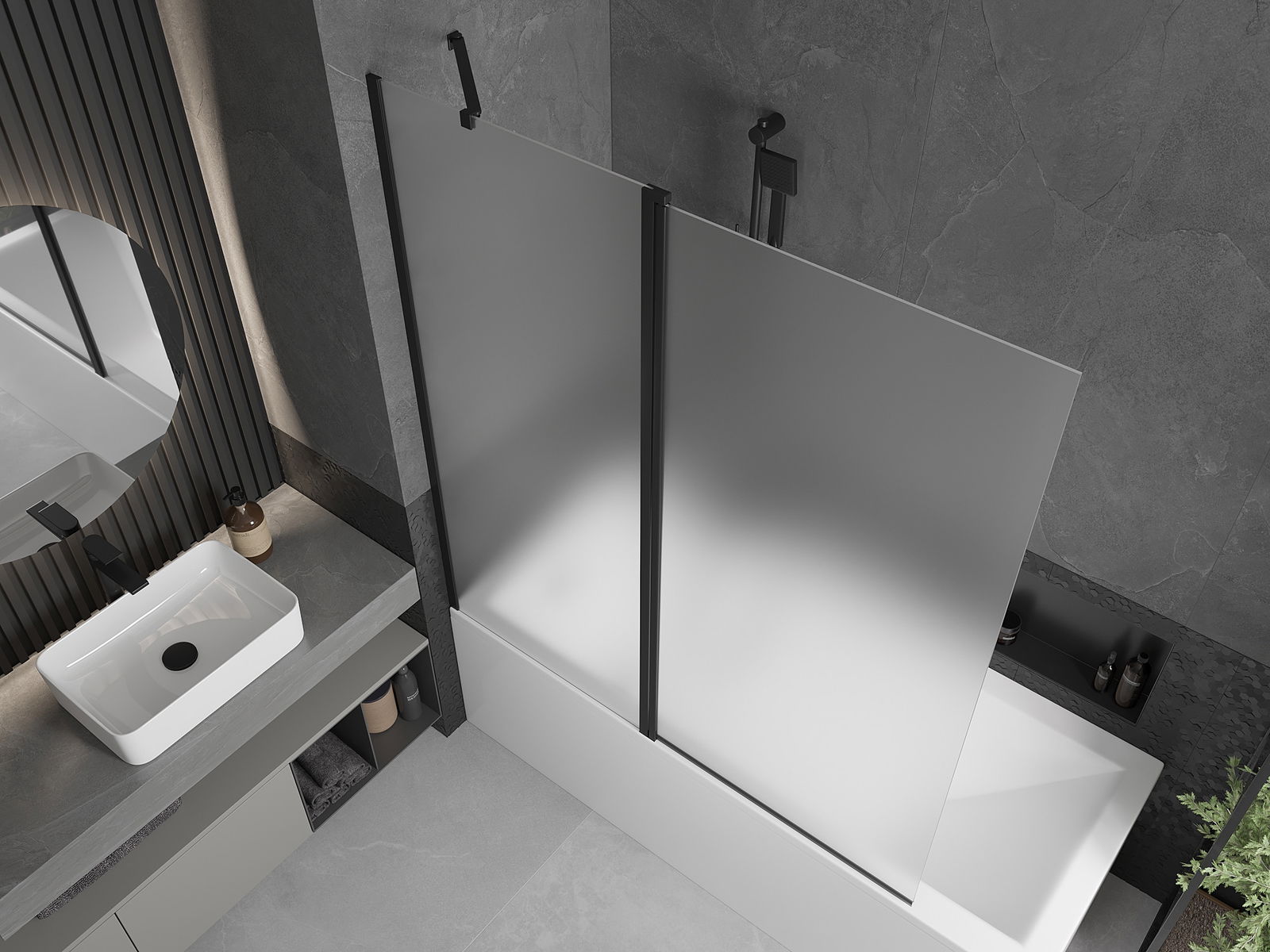 Efektīva aizsardzība pret ūdens izšļakstīšanos peldēšanās laikā. Ekrānam ir blīves, kas ideāli pielāgojas stikla virsmai un vannas malai. Funkcionāls risinājums, kas nodrošina drošību un vieglu tīrību.