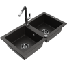 Mexen Mario granīta izlietne ar 2 nodalījumiem un Flora virtuves jaucējkrānu, pelēka - 6504-71-670401-07-B