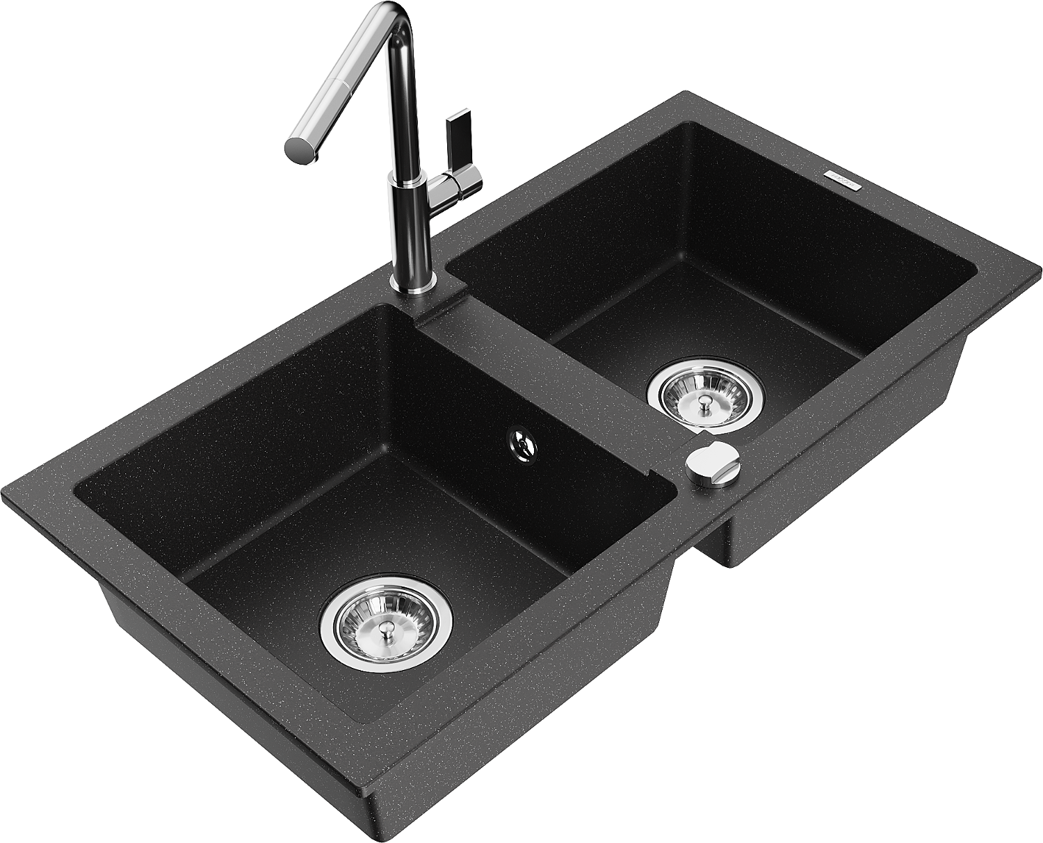 Mexen Mario divbļoda granīta ar divām kamerām ar virtuves jaucējkrānu Flora, melns/sudraba metālisks - 6504-73-670401-00