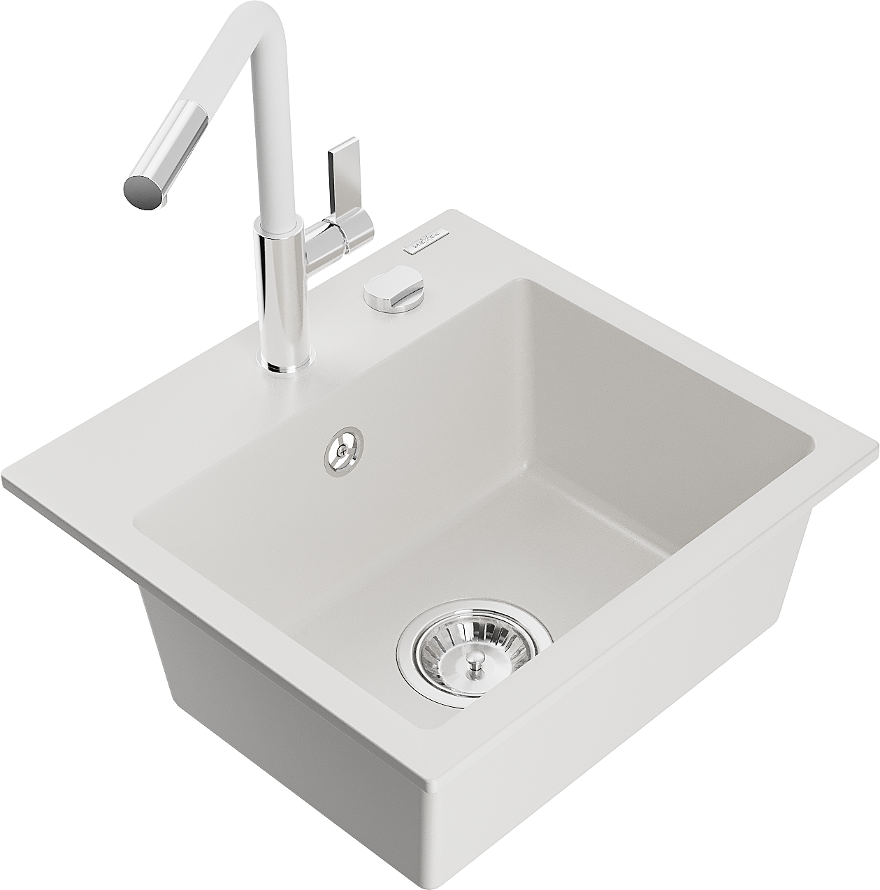 Mexen Milo granīta izlietne ar 1 nodalījumu un virtuves jaucējkrāns Flora, balts - 6505-20-670401-02