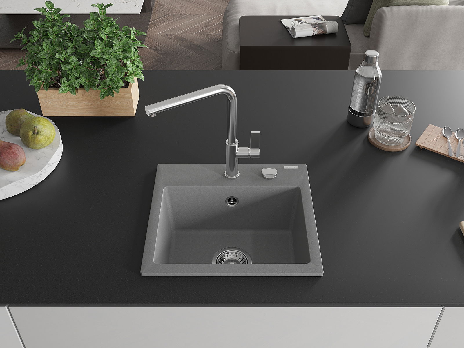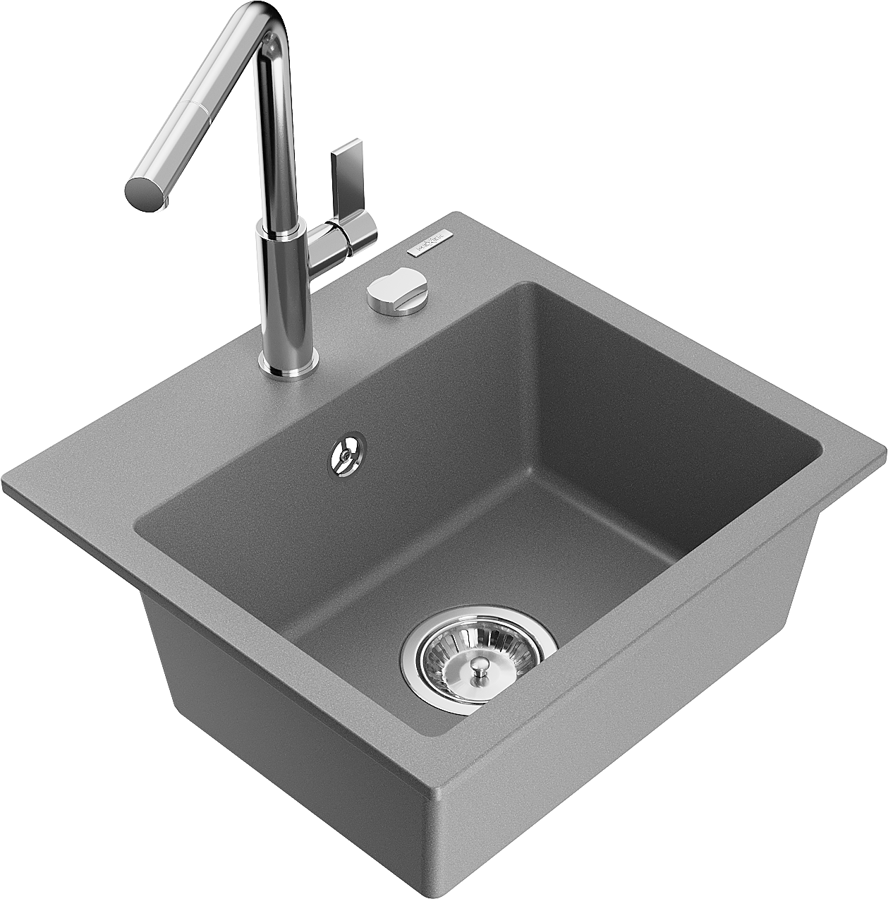 Mexen Milo granitizlietne ar vienu nodalījumu un virtuves jaucējkrānu Flora, pelēka - 6505-71-670401-00