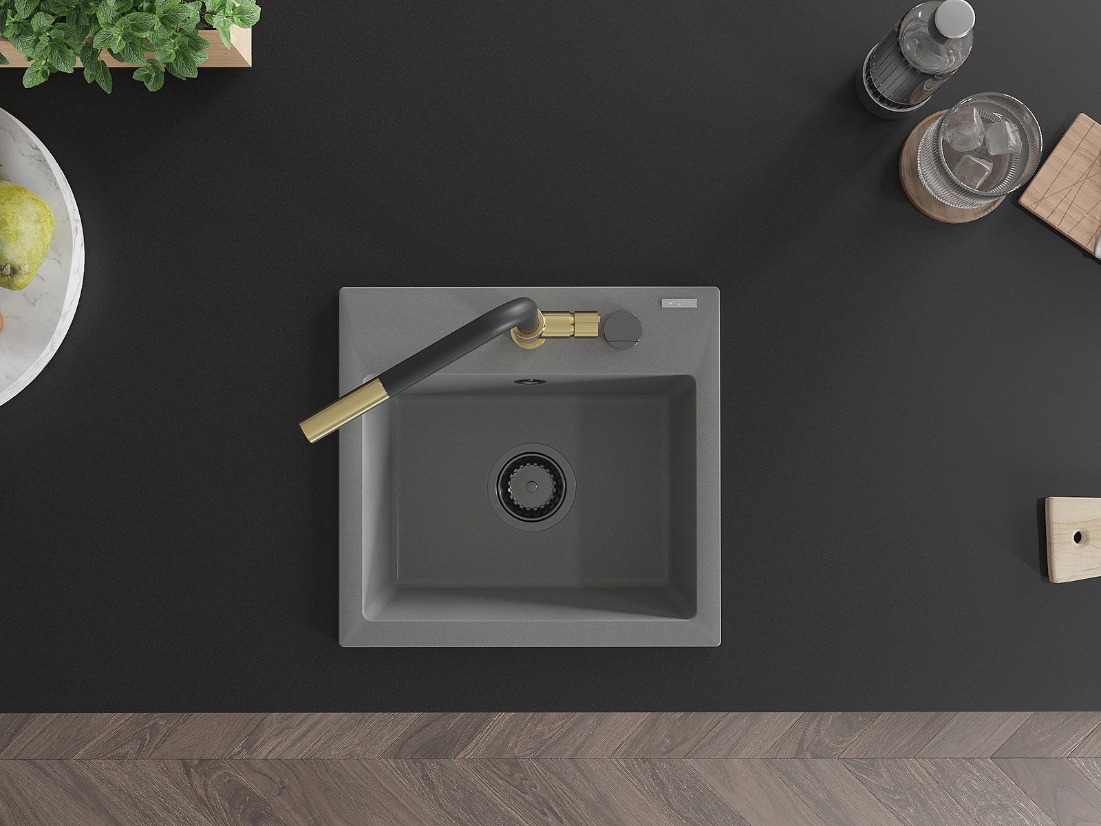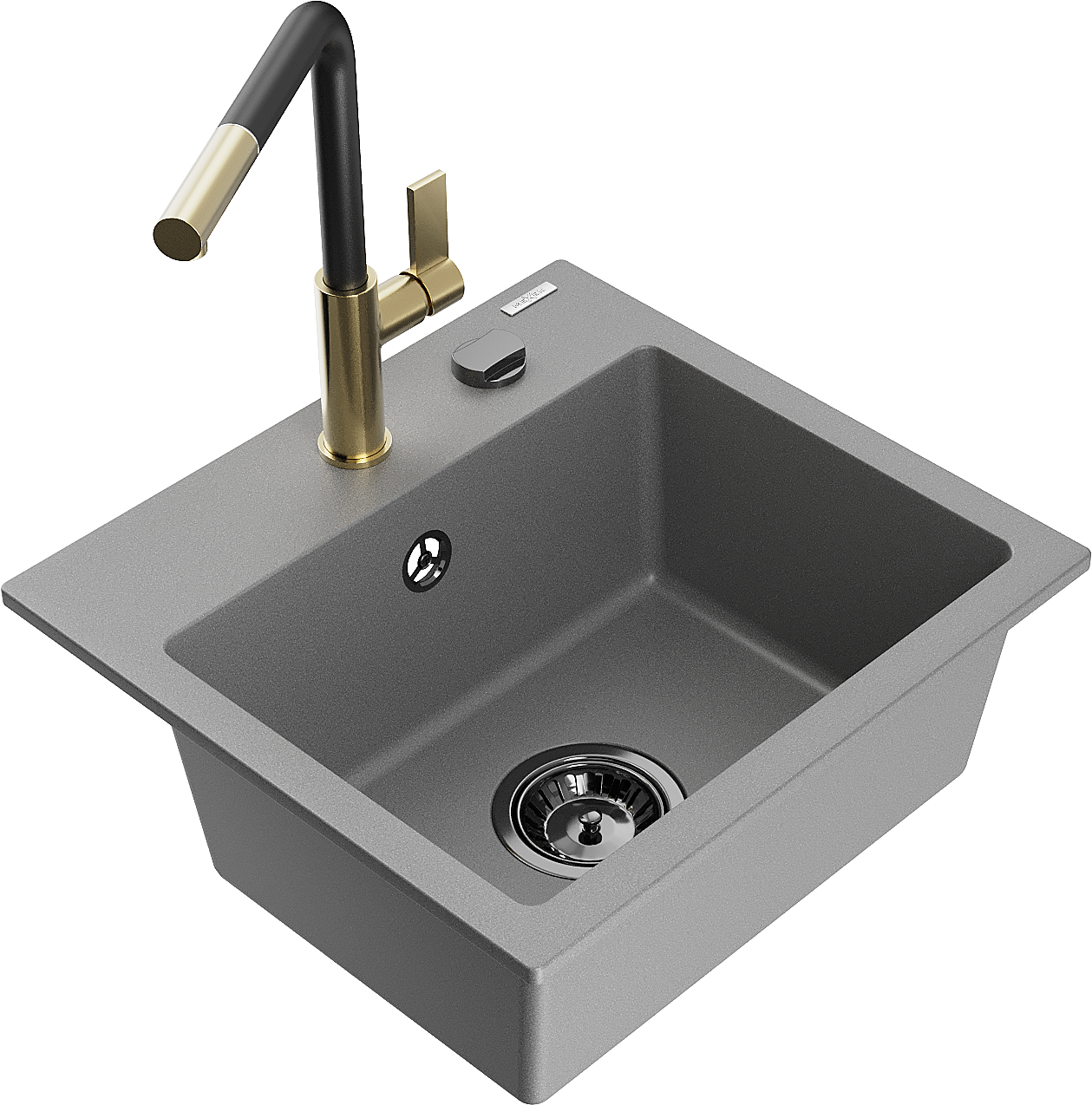 Mexen Milo granitais izlietne ar vienu nodalījumu un virtuves jaucējkrānu Flora, pelēks - 6505-71-670401-57-B