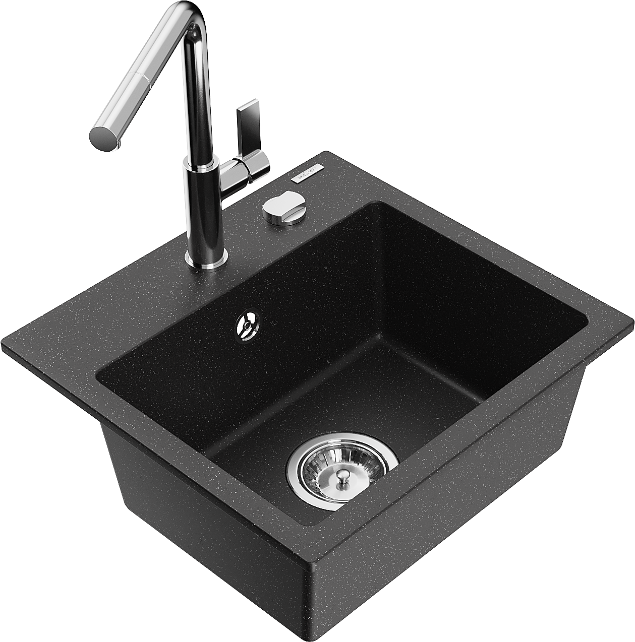 Mexen Milo granīta izlietne ar 1 nodalījumu un virtuves jaucējkrānu Flora, melna/sudraba metāliks - 6505-73-670401-00