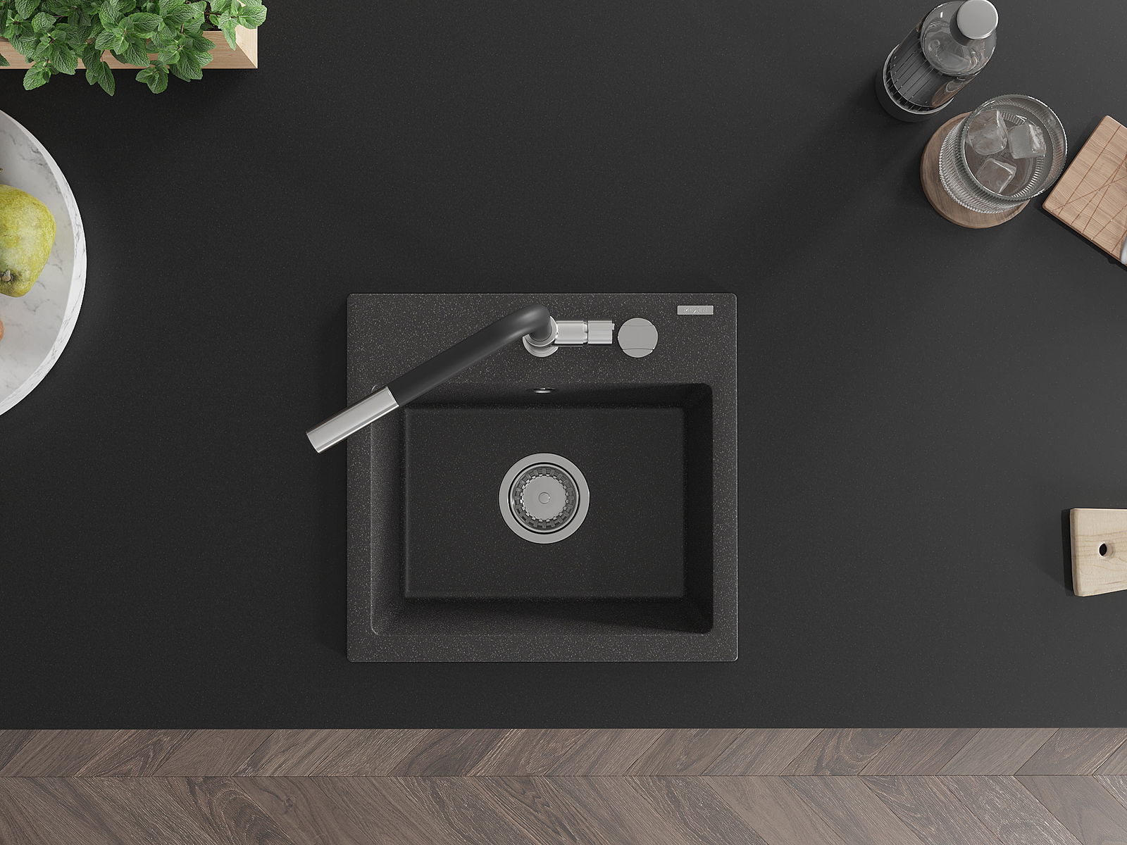 Izlietnei ir padziļināts caurums ar diametru 35 mm, kuru varat izsist patstāvīgi. To var izmantot, piemēram, šķidruma dozatora uzstādīšanai, kas novērsīs plastmasas pudeļu klātbūtni virtuvē un piešķirs tai elegantu apdari.