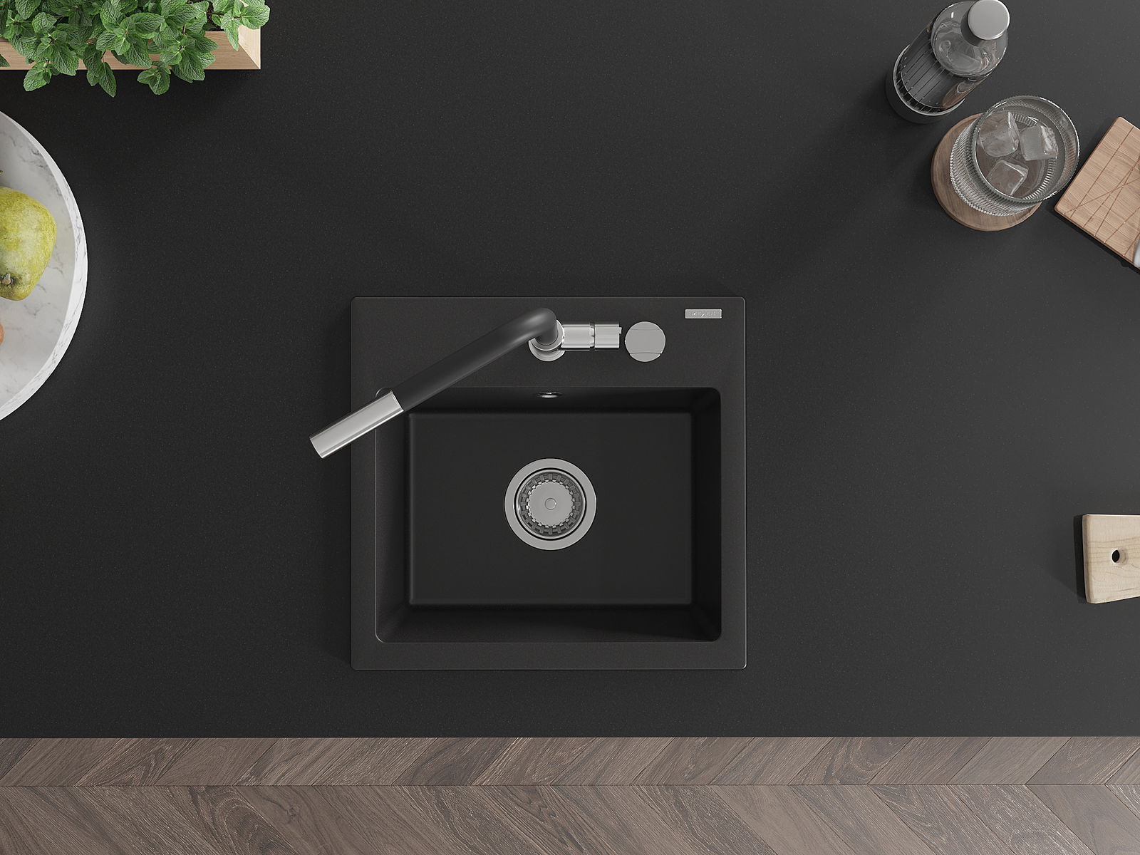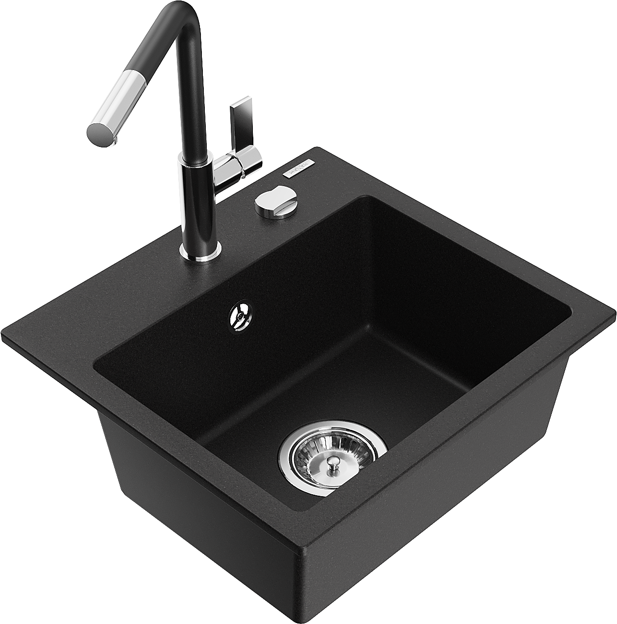 Mexen Milo granitē mazgabarība 1-kameru ar virtuves jaucējkrānu Flora, melns - 6505-77-670401-07