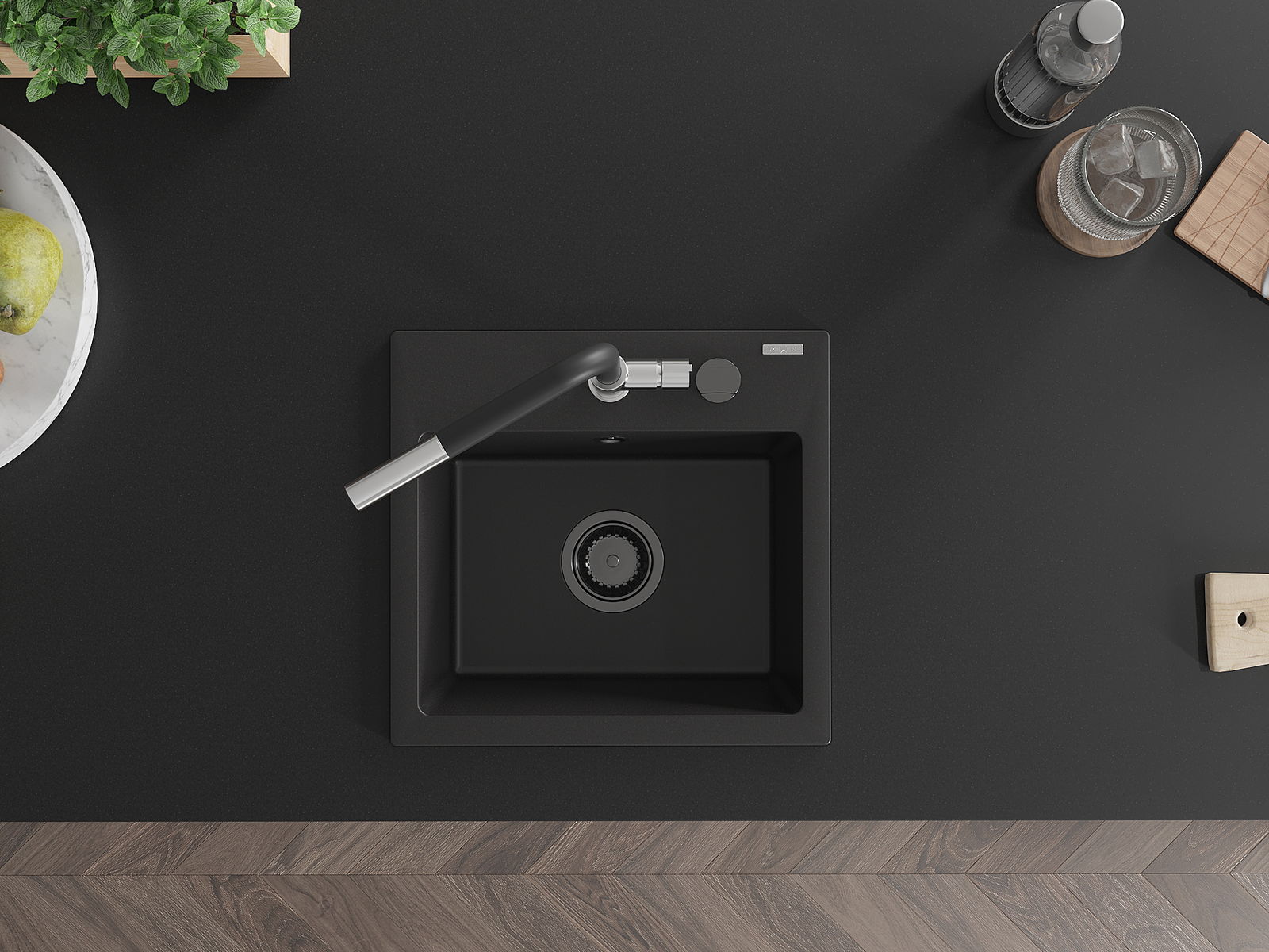 Mexen Milo granīta izlietne ar vienu nodalījumu un Flora virtuves jaucējkrānu, melna - 6505-77-670401-07-B