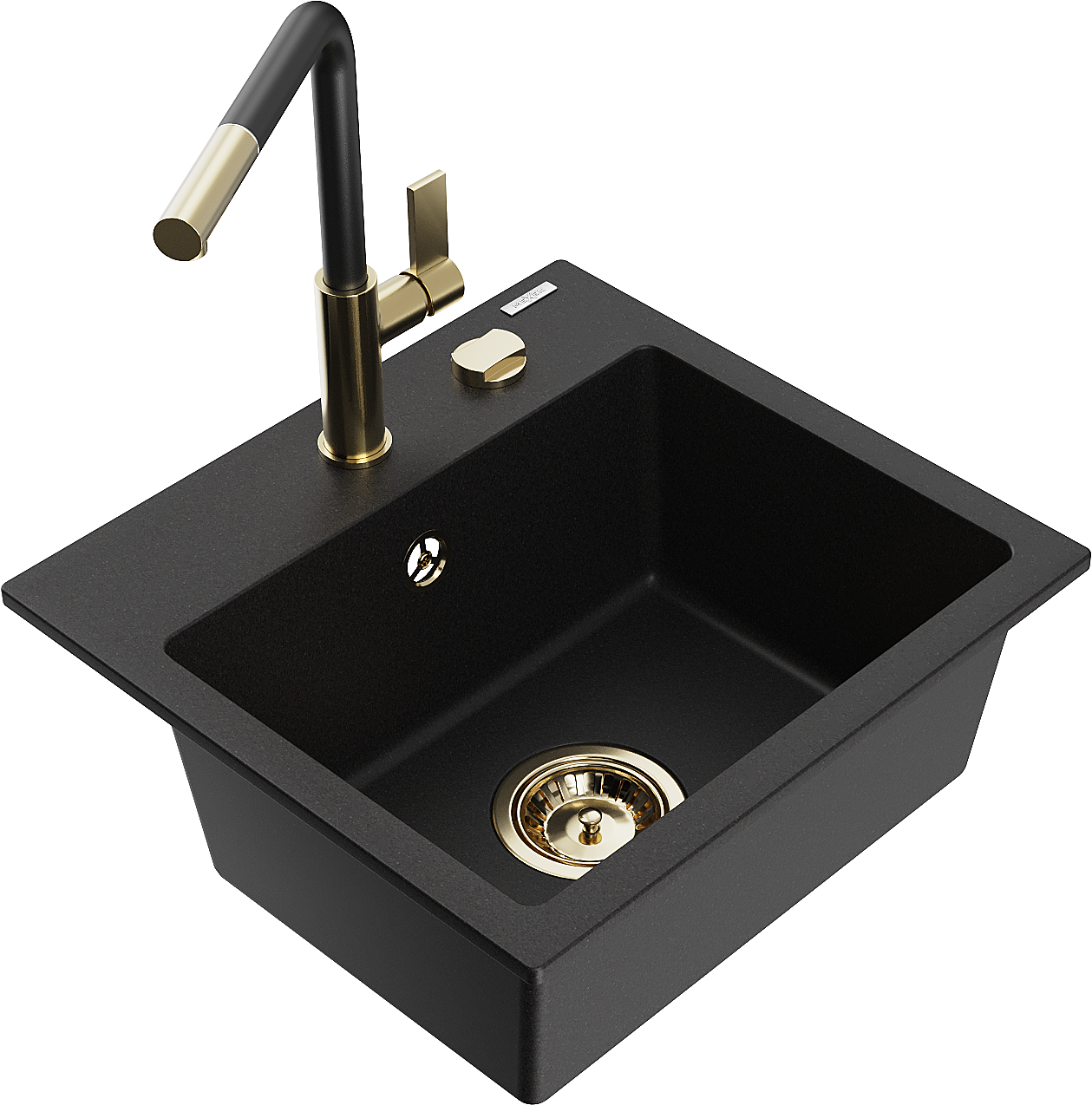 Mexen Milo granīta izlietne ar vienu nodalījumu un virtuves jaucējkrānu Flora, melns - 6505-77-670401-57-G