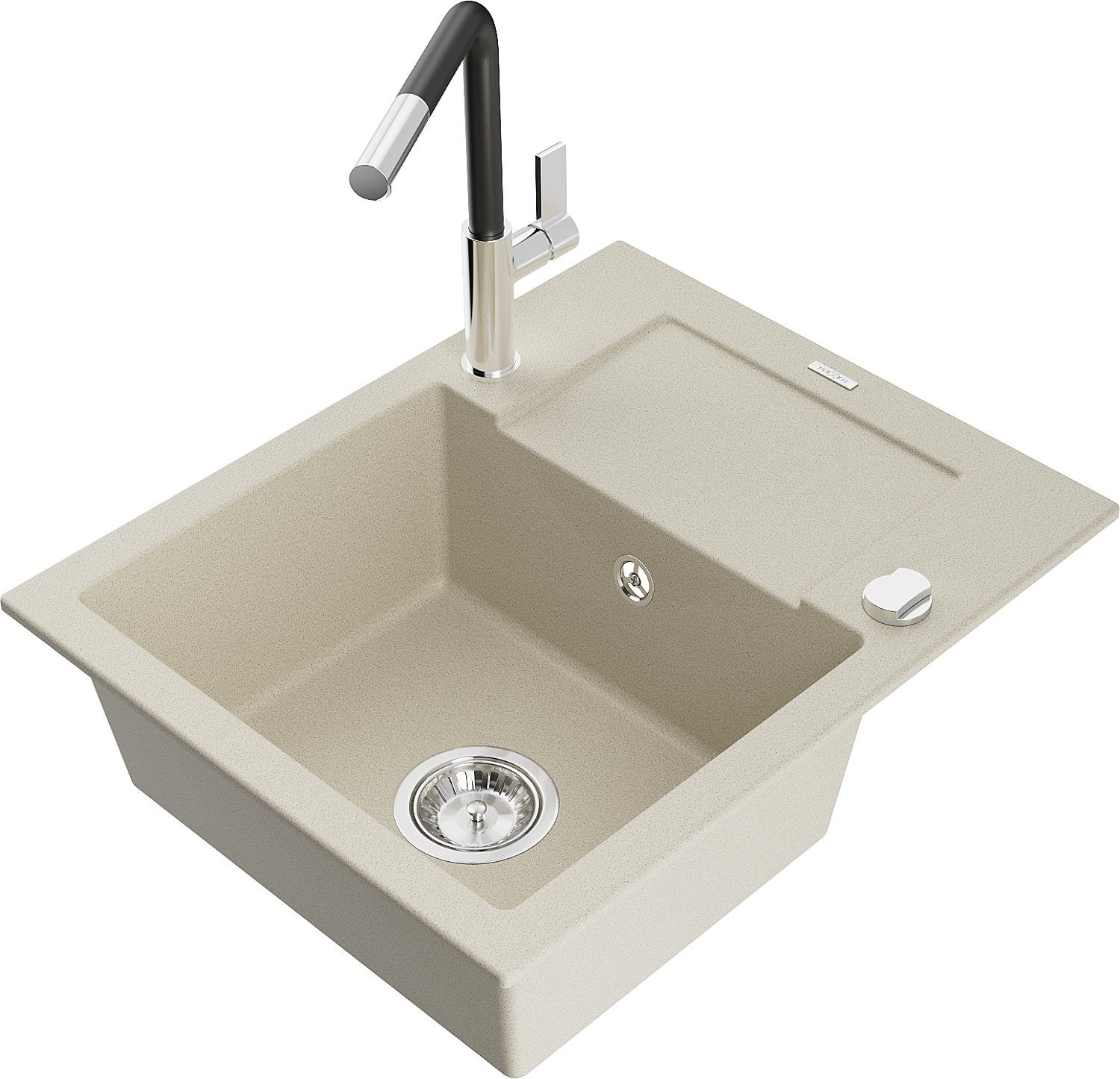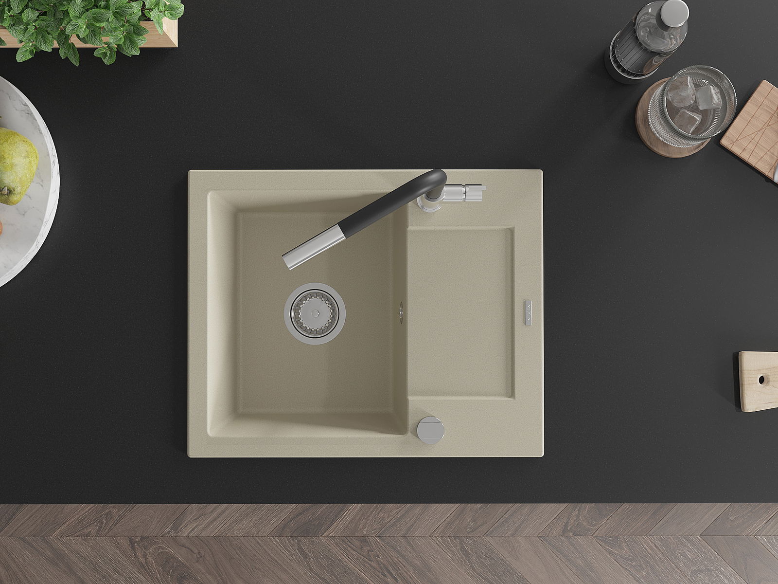 Mexen Enzo granitizlietne 1-kameras ar noteku un virtuves jaucējkrānu Flora, bēšs - 6506-69-670401-07