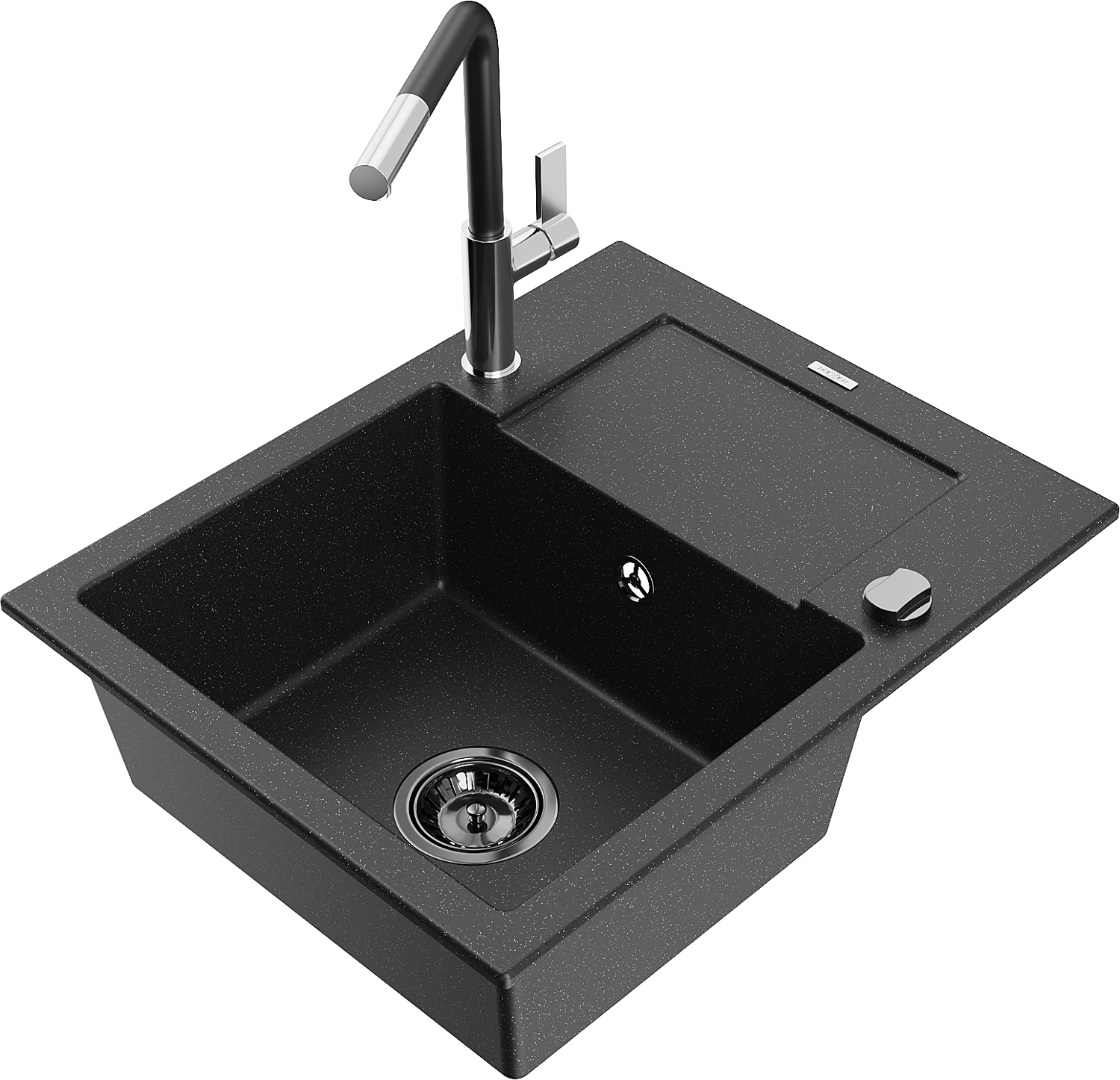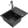 Mexen Enzo granīta izlietne ar vienu nodalījumu, pilināšanas trauku un virtuves jaucējkrānu Flora, melna/sudraba