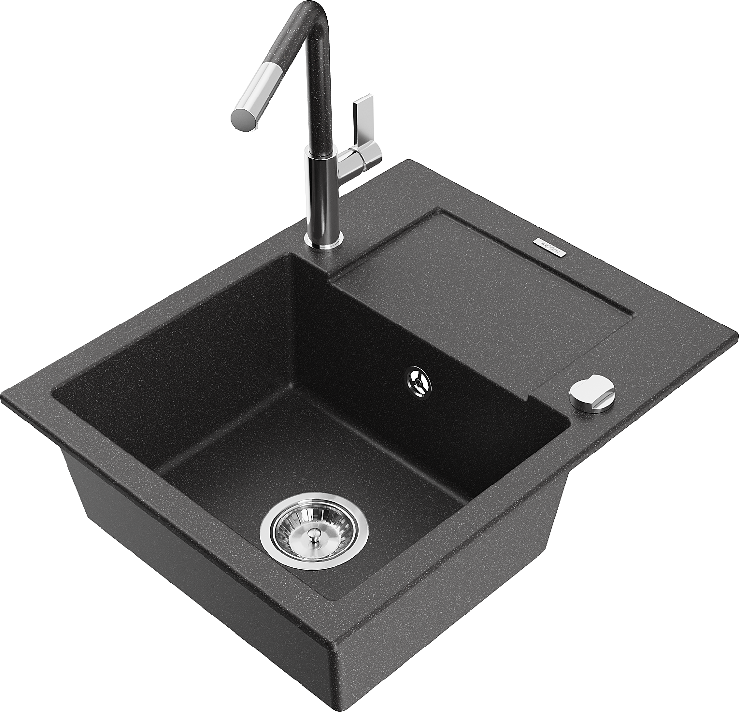 Mexen Enzo granit izlietne ar 1 nodalījumu, noteces zonu un Flora virtuves krānu, melna ar plankumiem - 6506-76-670401-08
