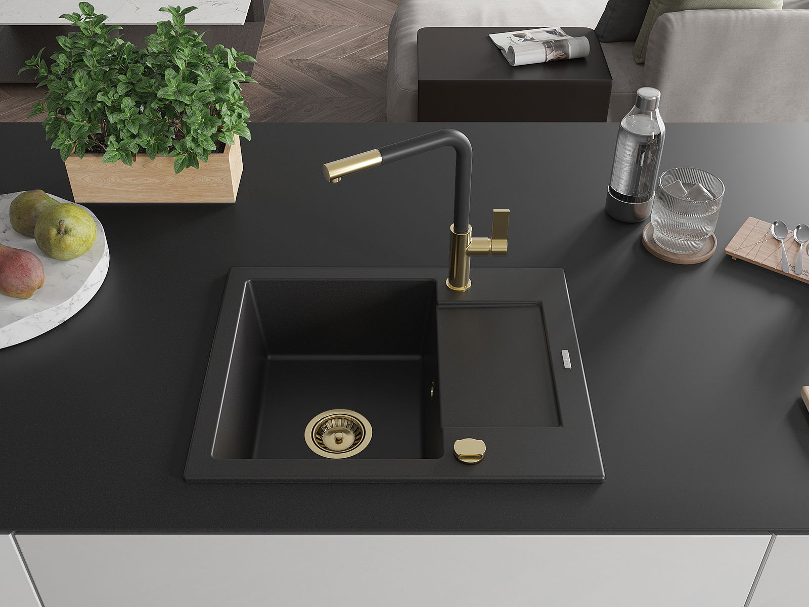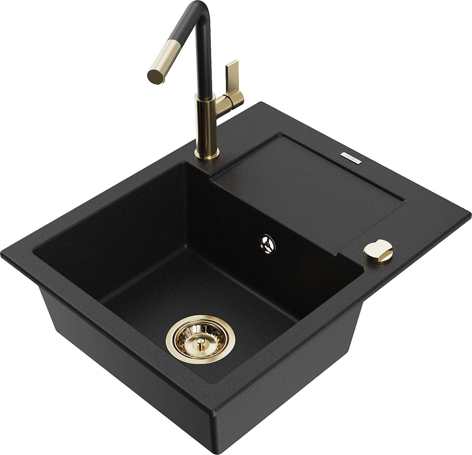 Mexen Enzo granitizlietne ar 1 nodalījumu ar noteces un virtuves jaucējkrānu Flora, melna - 6506-77-670401-57-G