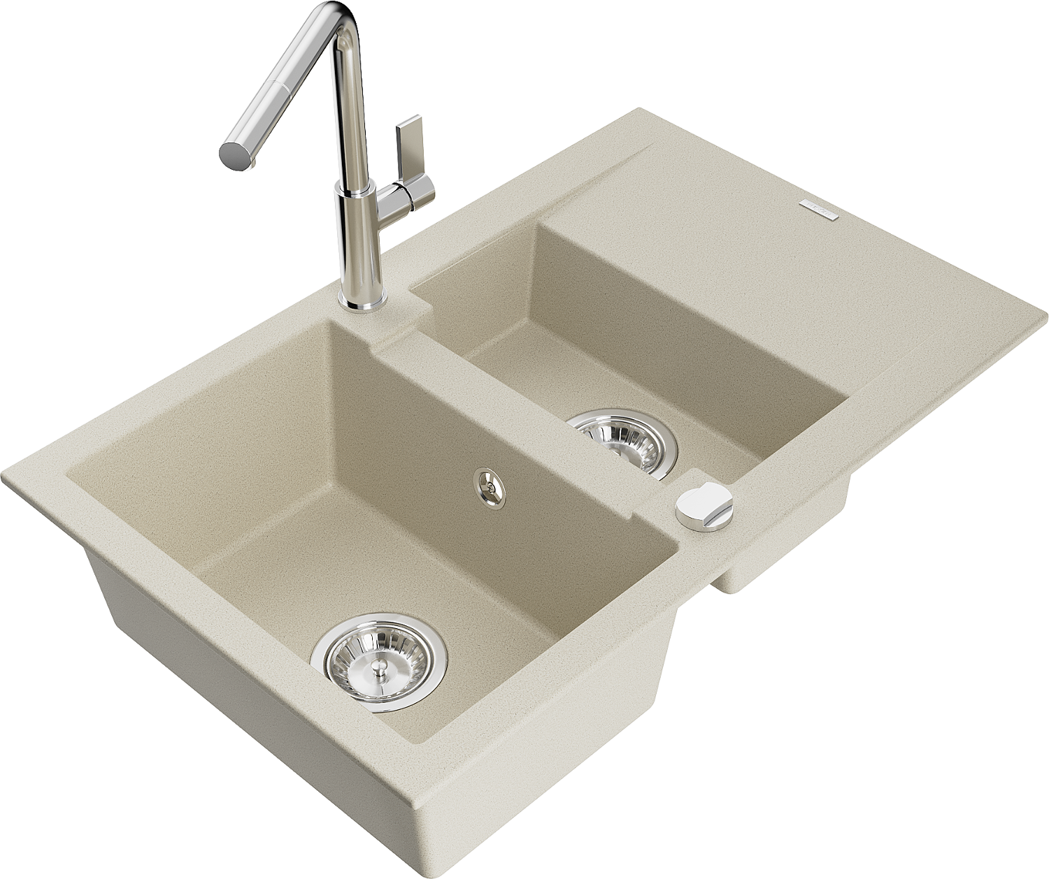 Mexen Gaspar granitizlietne 1,5 nodalījumu ar nosusinātāju un virtuvju jaucējkrānu Flora, bēšs - 6507-69-670401-00