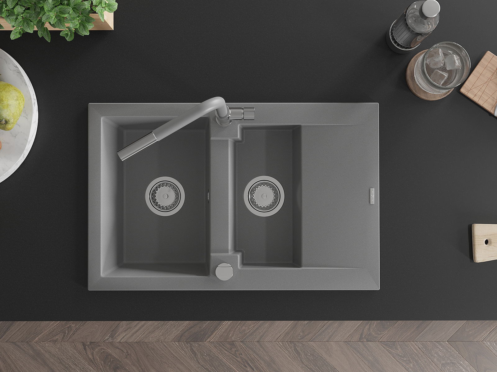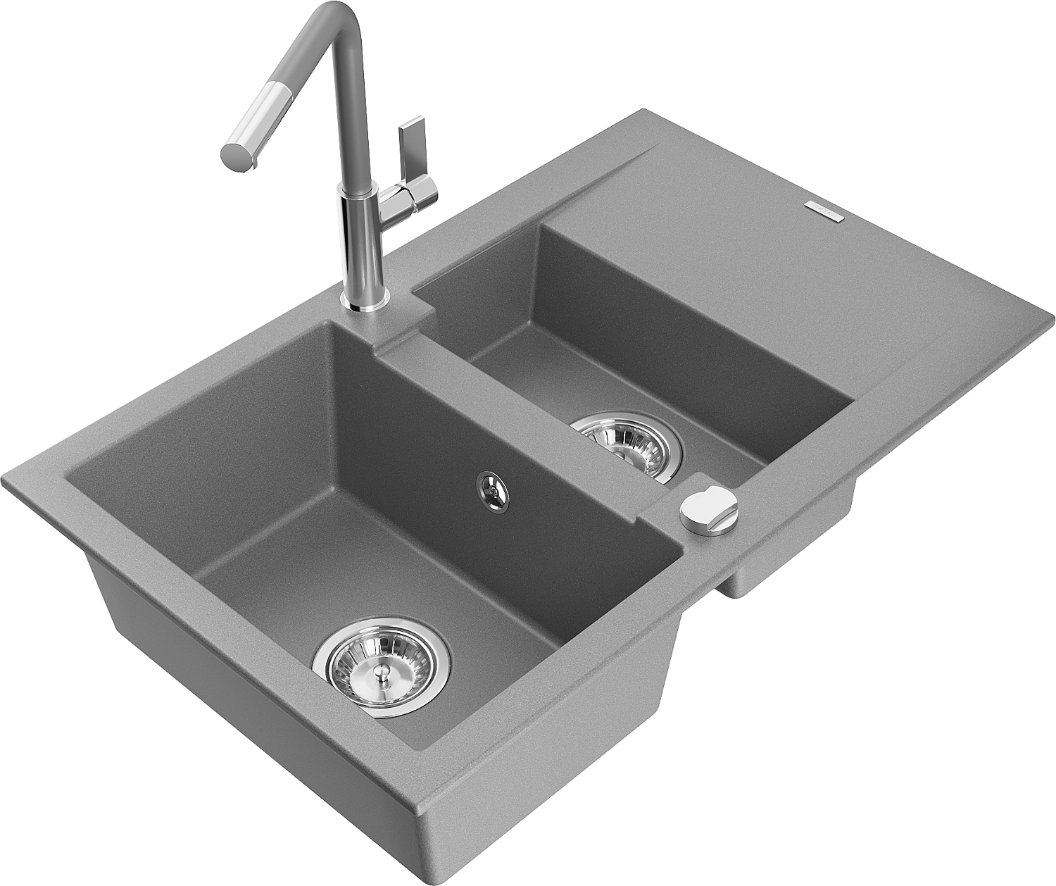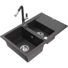 Mexen Gaspar granitā izlietne ar 1,5 nodalījumiem, notekpaplāti un Flora virtuves jaucējkrānu, pelēka - 6507-71-670401-06