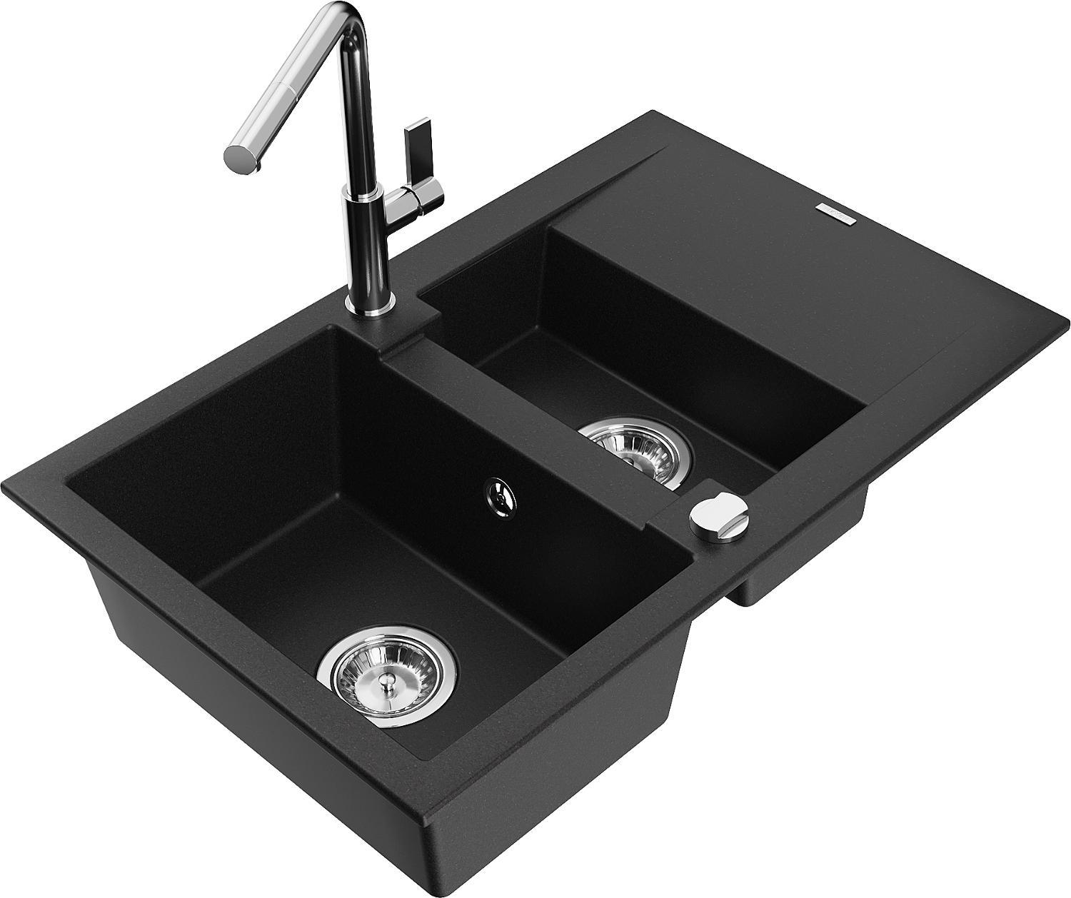 Mexen Gaspar granīta izlietne ar 1,5 nodalījumiem un noteces zonu, ar Flora virtuves jaucējkrānu, melna - 6507-77-670401-00