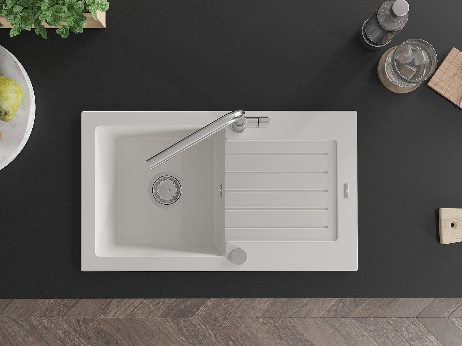 Izlietnes virsma ir izturīga pret traipiem un krāsas izmaiņām, tāpēc to ir viegli uzturēt tīru un tā saglabā savu krāsu ilgu lietošanas laiku. Estētiski un praktiski papildina jebkuru virtuvi.
